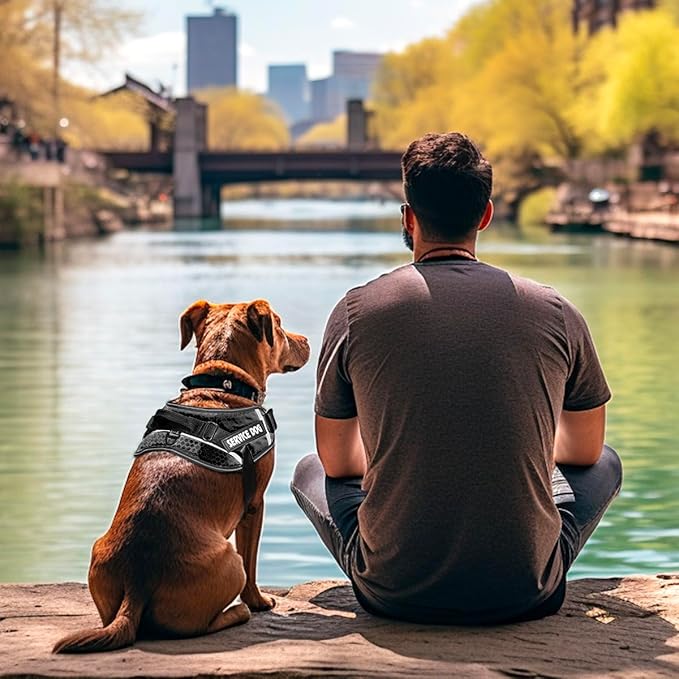 - Easy to Use :This service dog harness designed with quick snap buckles and have a adjustable chest strap,make it easy and secure to put on and take off. Slide the harness over your dog's head, buckle it up, adjust the straps, and here you go! The dog's removable patches are well designed to be easily pasted on the dog's vest,just change the patch then can achieve a vest multi-use.