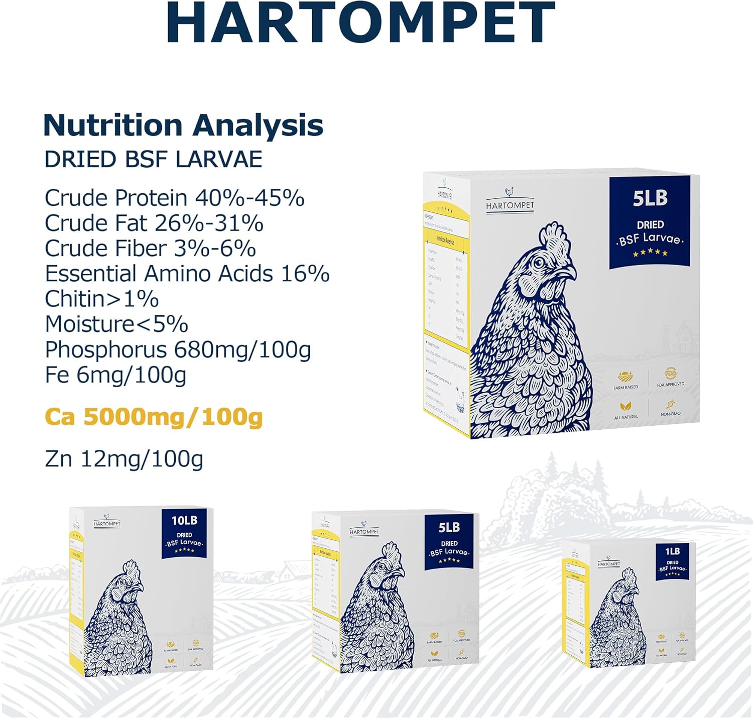 - Calcium Boost: Dried Black Soldier Fly Larvae, with 85x more calcium than mealworms, promote strong eggshells and support poultry health.