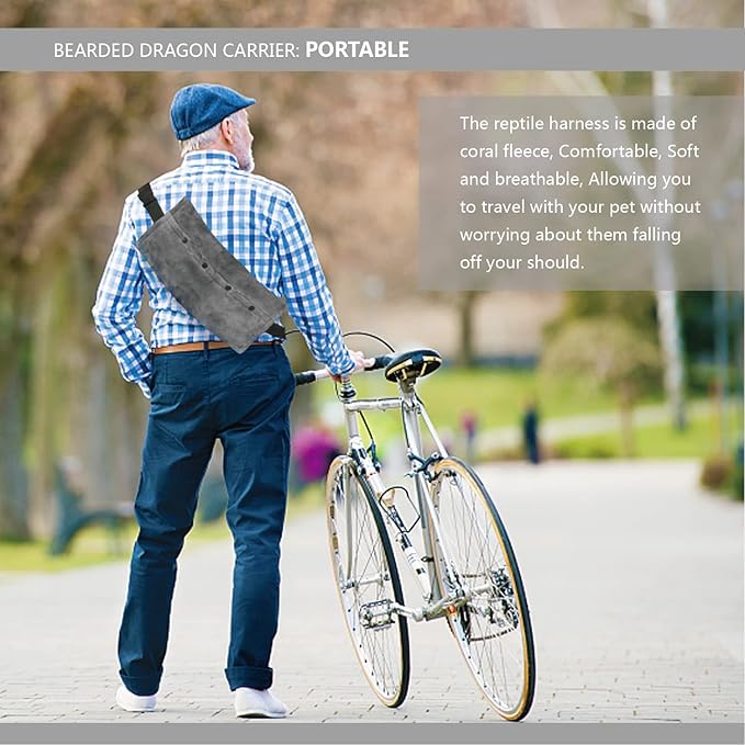 - BEARDED DRAGON CARRIER: The Carrier with Adjustable Shoulder Strap is made of coral fleece, Comfortable, Soft and breathable, Allowing you to travel with your pet without worrying about them falling off your shoulder, Safe and comfortable.