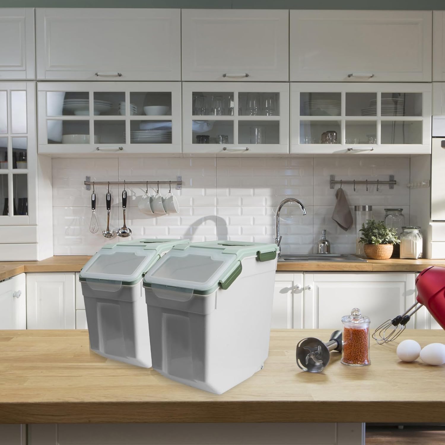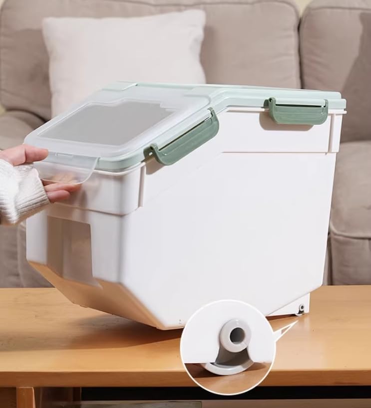 Rice Storage Container 25 lbs, 2 Packs Large Flour Storage Containers with Seal Locking Lid & Wheels, BPA Free Rice Dispenser, Measuring Cup | Scoop, for Sugar Cereal Dry Food, Dog Pet Food Bin -Green