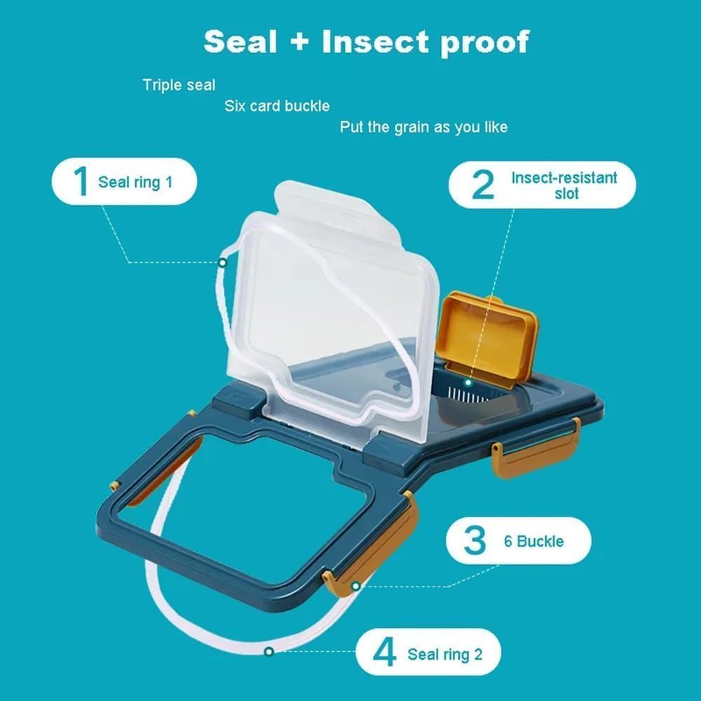- Airtight Silicone Sealed Cover with 6 Locks: The grain and flour container with silicone sealing ring can prevent dampness, ensure the airtight, Built-in damp-proof box can place deodorzer or garlic to control the humidity and keep the food fresh continuously.