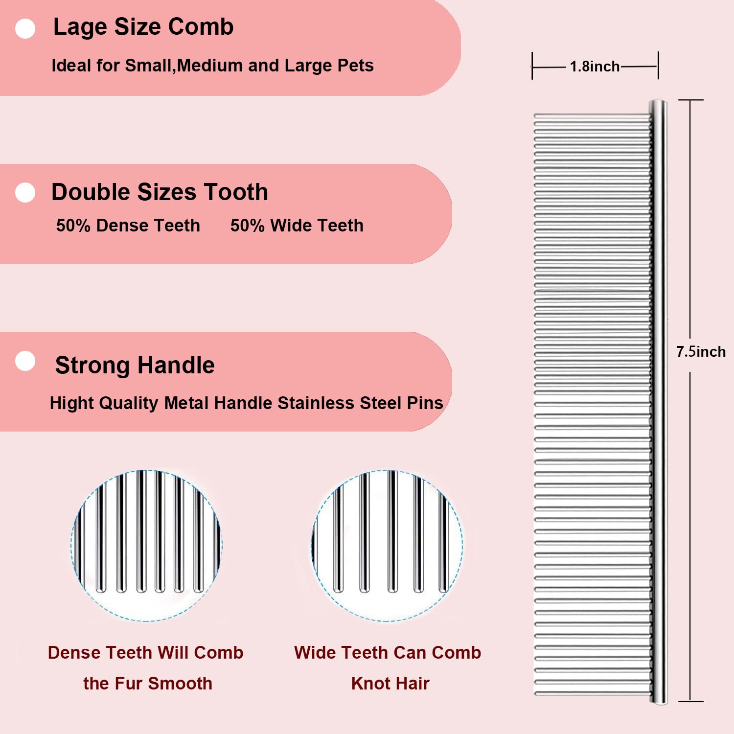 - 2 In 1 Stainless Steel Comb: Pet comb has high quality anti-static stainless steel round teeth that are strong enough, our dog combs for grooming features round teeth that break up tangles and effectively remove loose hair, dander dirt trapped beneath fur. dog comb naturally support the health of your furry best friend by boosting circulation
