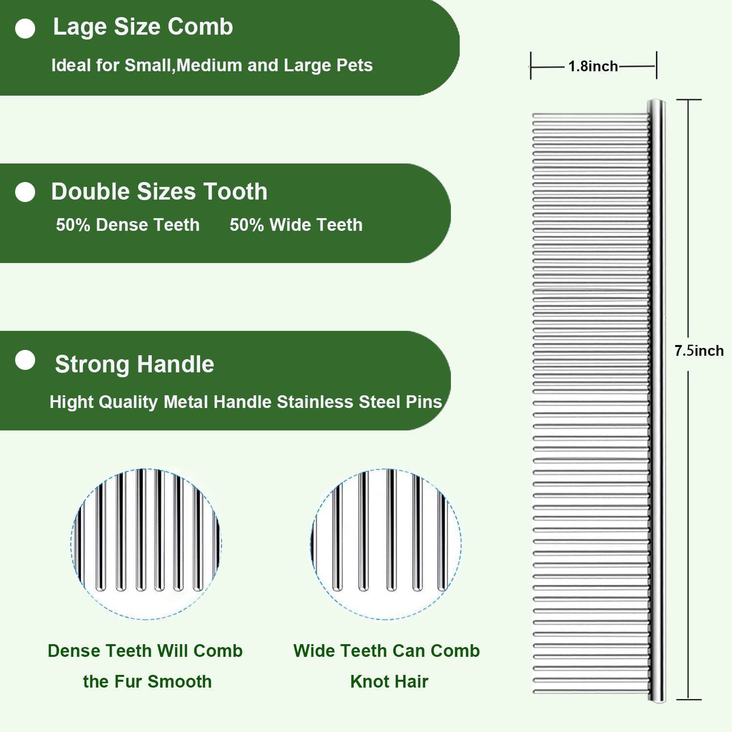- 2 In 1 Stainless Steel Comb: Pet comb has high quality anti-static stainless steel round teeth that are strong enough, our dog combs for grooming features round teeth that break up tangles and effectively remove loose hair, dander dirt trapped beneath fur. dog comb naturally support the health of your furry best friend by boosting circulation
