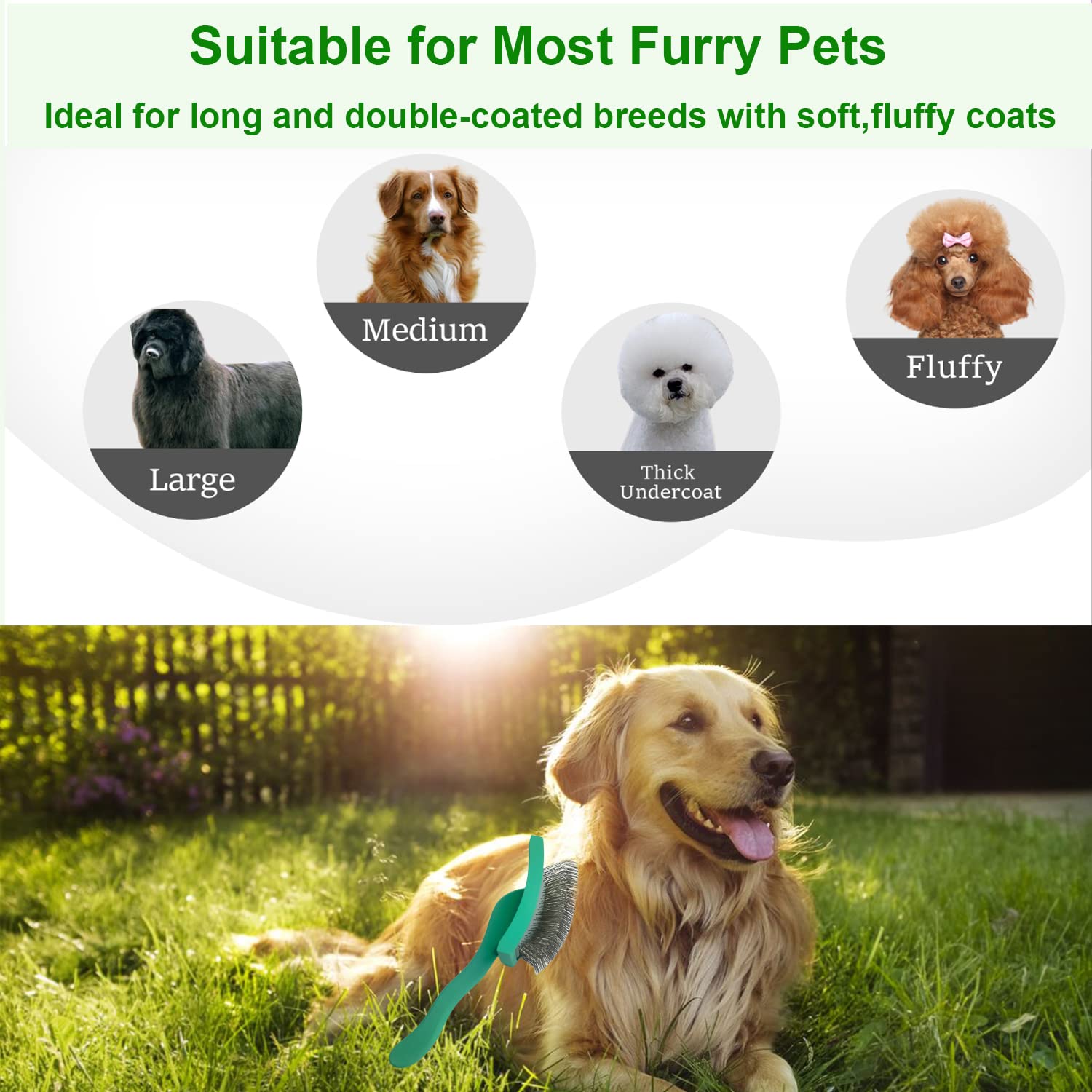 Large Slicker Dog Grooming Brush Kit - Ergonomic Wooden Handle, Long Pins for Goldendoodles, Poodles, Doodles & Haired Dogs (green)