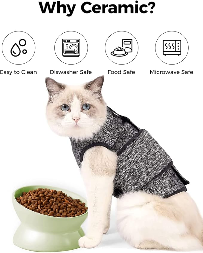 LoeJan Elevated Cat Food Bowl, 5 Oz Ceramic Raised and Tilted Water Bowl, Anti Vomiting and Protect Pets' Spines Dishes for Small Dog, Fat Faced Cat, Kitten (Green, 1 Pack)