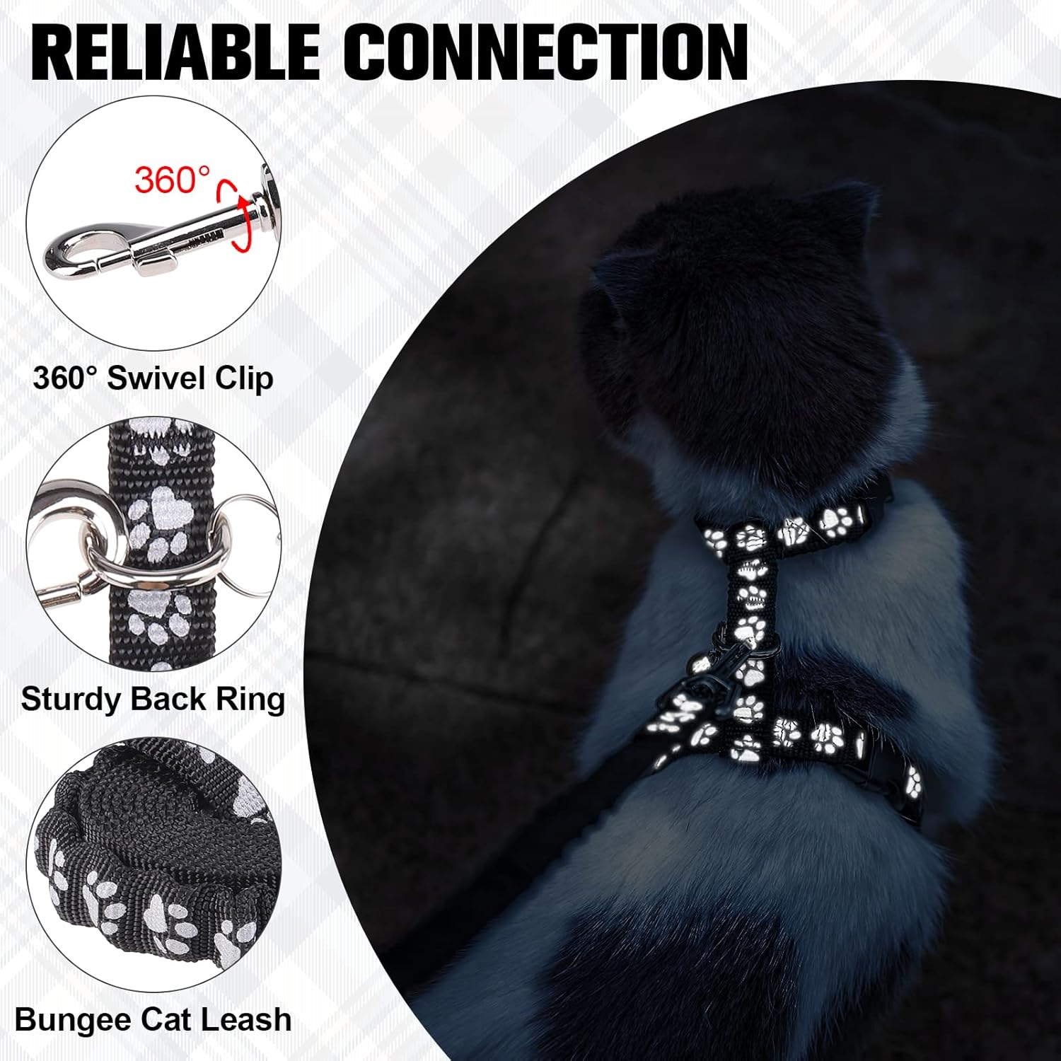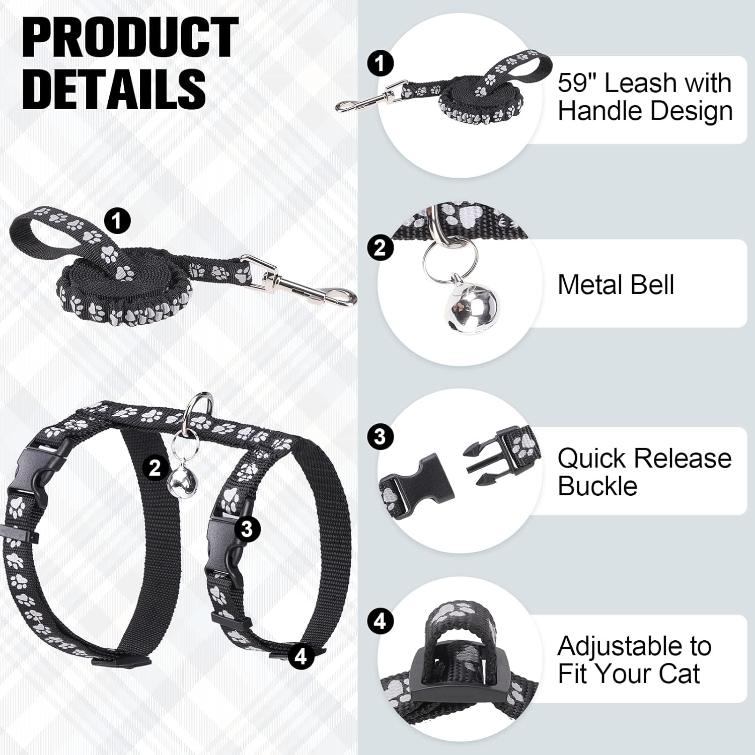 - [APPEARANCE]- The plaid design makes the cat harness escape proof look stylish yet practical. Bright colors also allow you to spot your cat in time to prevent it from getting lost while walking outdoors.