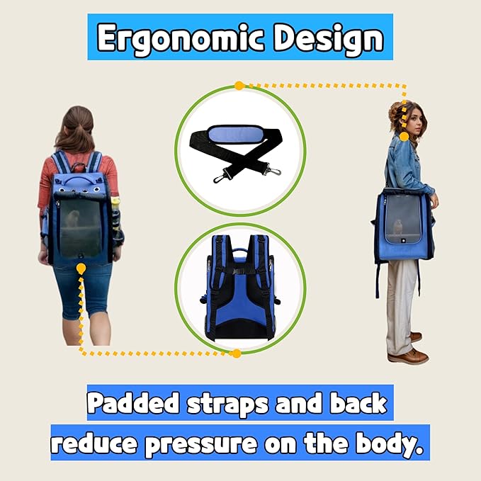 - 🚗【Travel Ready】 Long trips? No problem! This carrier has space for food, water, and toys that can be hung from the internal D-ring. The removable stainless steel tray makes cleaning up bird droppings quick and easy, keeping everything sanitary.