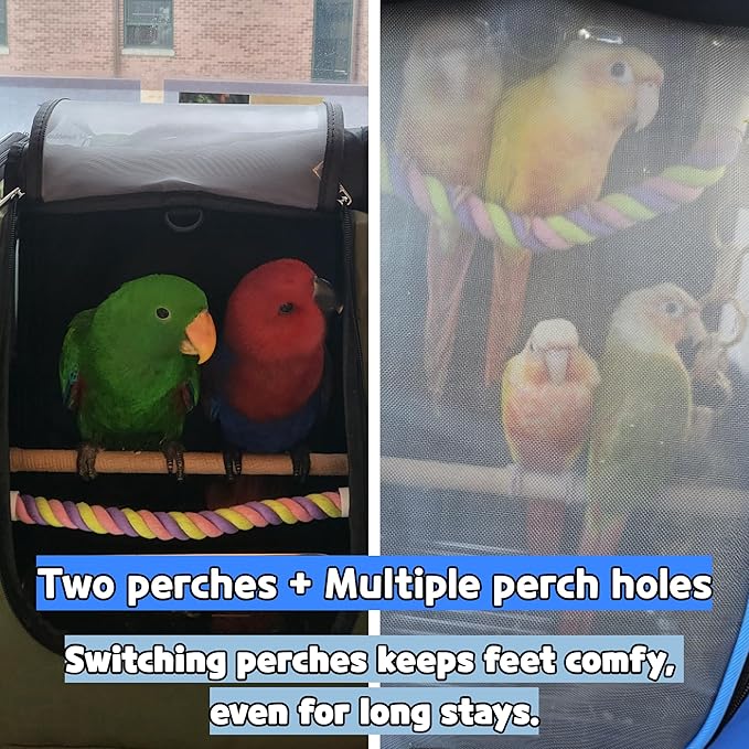 - 😊【Comfortable Breathing】 Birds have sensitive respiratory systems, so it's important they get fresh air. Our carrier’s three-sided mesh and ventilation holes ensure your bird can always breathe clean air—without any chemical smells commonly found in other carriers.