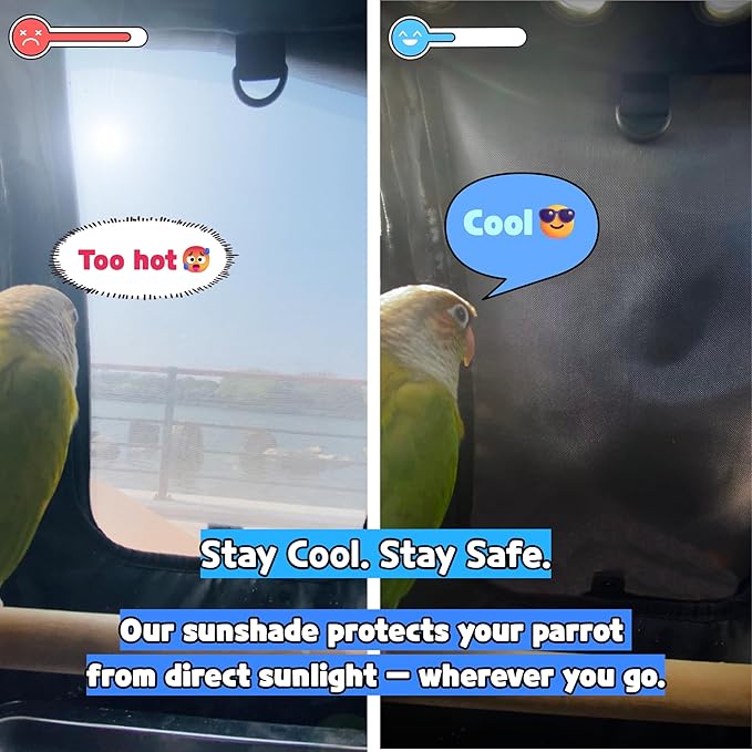 - 🌞【Heat Protection】 Parrots are at risk of heatstroke when exposed to direct sunlight, especially in transparent plastic and PVC carriers. You can keep your bird safe and cool by covering the mesh with flaps. The white mesh reflects heat, unlike dark, gray colors that absorb it.
