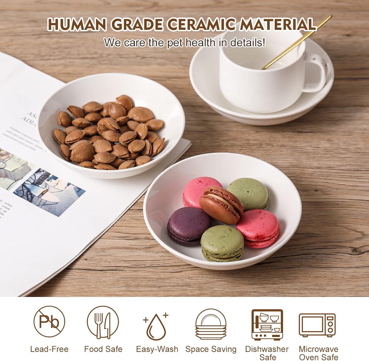 - Safe & Healthy Material - The cat bowls are made of premium food graded ceramic that fired at high temperatures, sturdy and durable, cadmium and lead free, non-toxic and harmless.