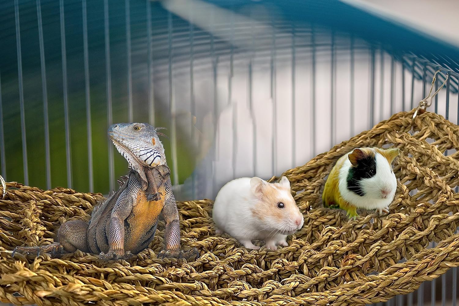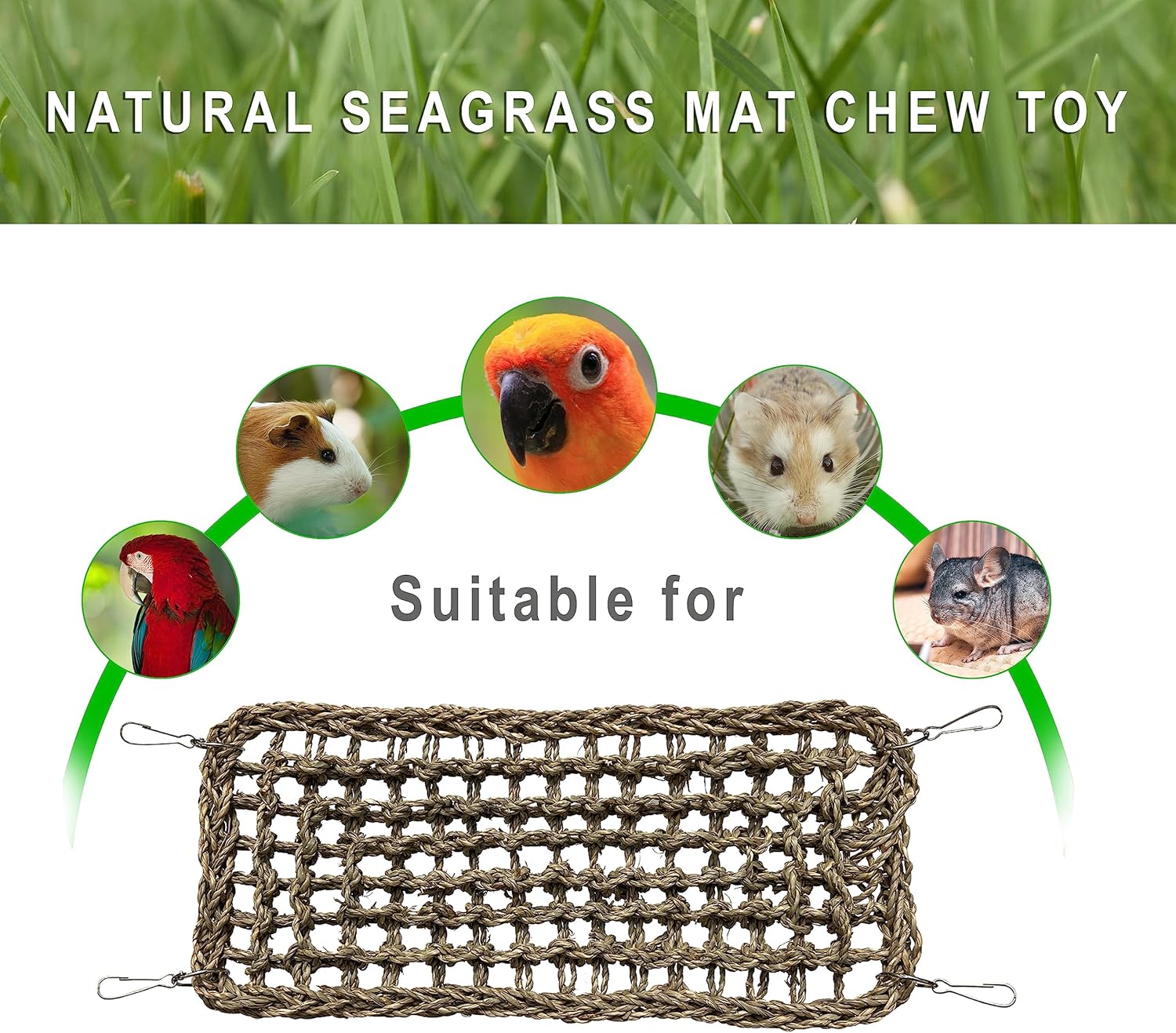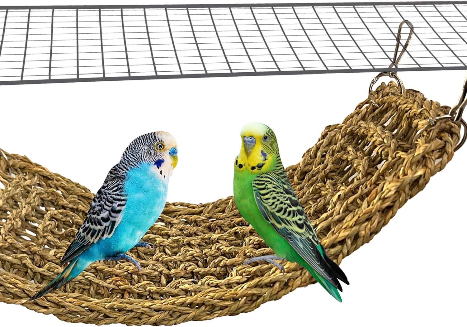 SIMENA Seagrass Mat for Birds, Natural Grass Woven Bird Net Hammock, Climbing Rope Ladder, Chew Toys for Parrots Lovebirds Cockatiels Conures Budgies, Cockatoos (Small)