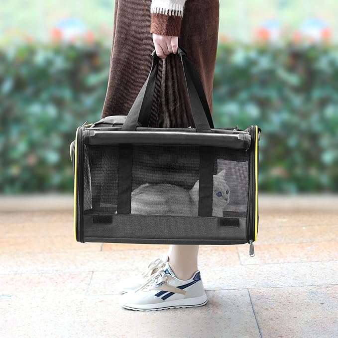 - 【Breathable and Private】GAPZER large cat carrier designed mesh all around to ensure normal circulation of air inside the box and easy for you to check on your pet. These roller blinds can be put down if your pet feels nervous.