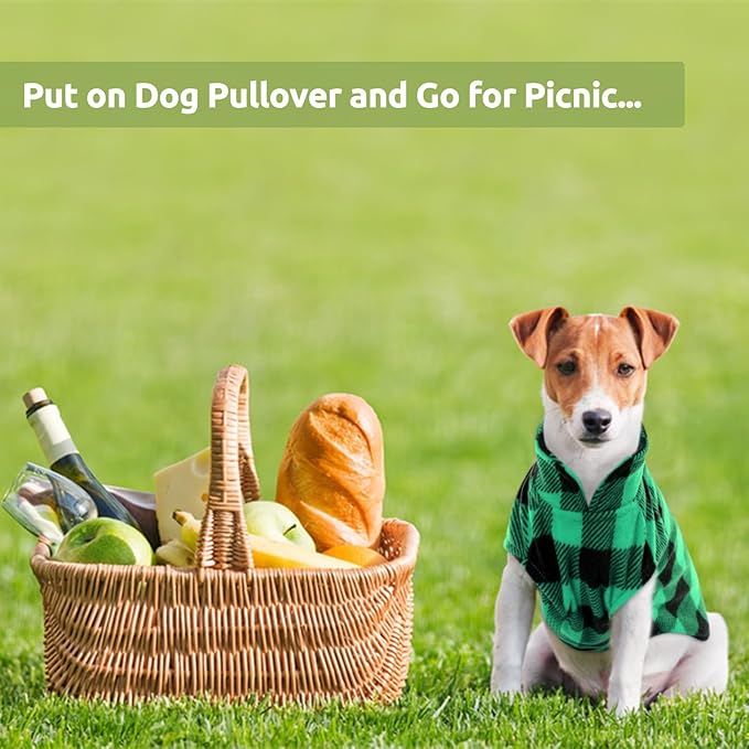 - This dog pullover is designed with classic green & black buffalo plaid, which brings happiness and good luck for new year. A hole on the back is for leash. Attractive band collar is really distinctive.