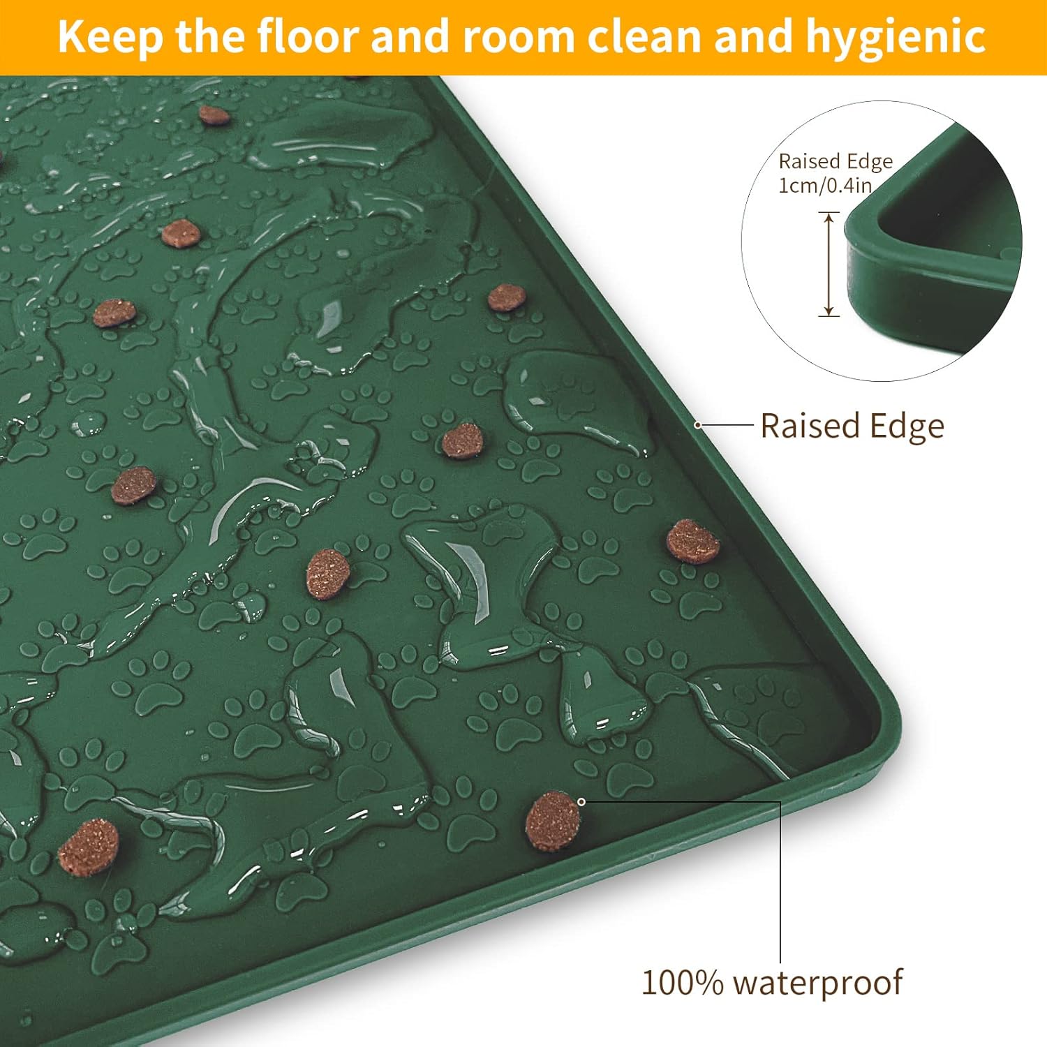 Ptlom Pet Placemat for Dog and Cat, Waterproof Silicone Pet Feeding Bowl Mats for Food and Water, Small Medium Large Dogs Mat Prevent Residues from Spilling to Floor, Hunter Green, 31.5" 23.6"