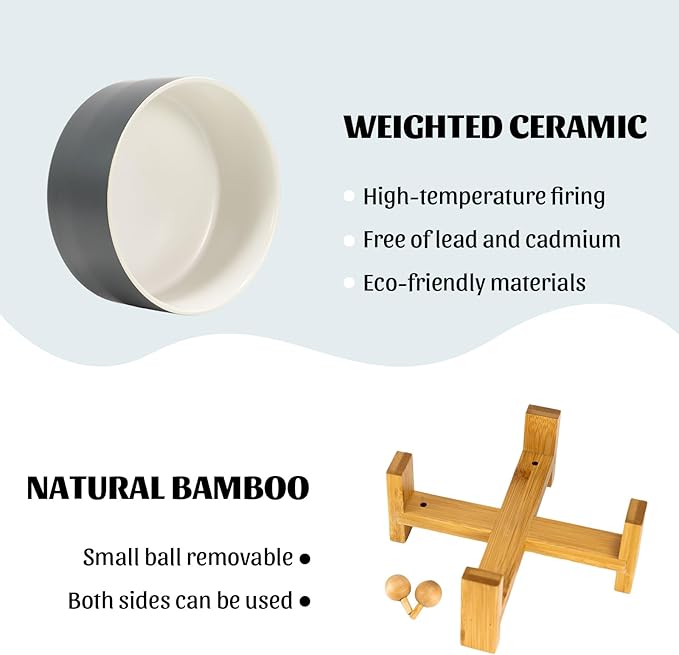 - CERAMIC MATERIAL: SPUNKYJUNKY Tilted Dog Bowl Set uses high temperature fired safe ceramics with a heightened wooden stand to provide a healthy feeding environment for your pet