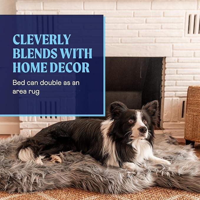 PAW BRANDS PupRug Orthopedic Dog Bed for Large Dogs with Fluffy Soft Faux Fur and Memory Foam for Joint Pain Relief, Machine Washable and Waterproof Couch Bed, Charcoal Grey, Large/Extra Large
