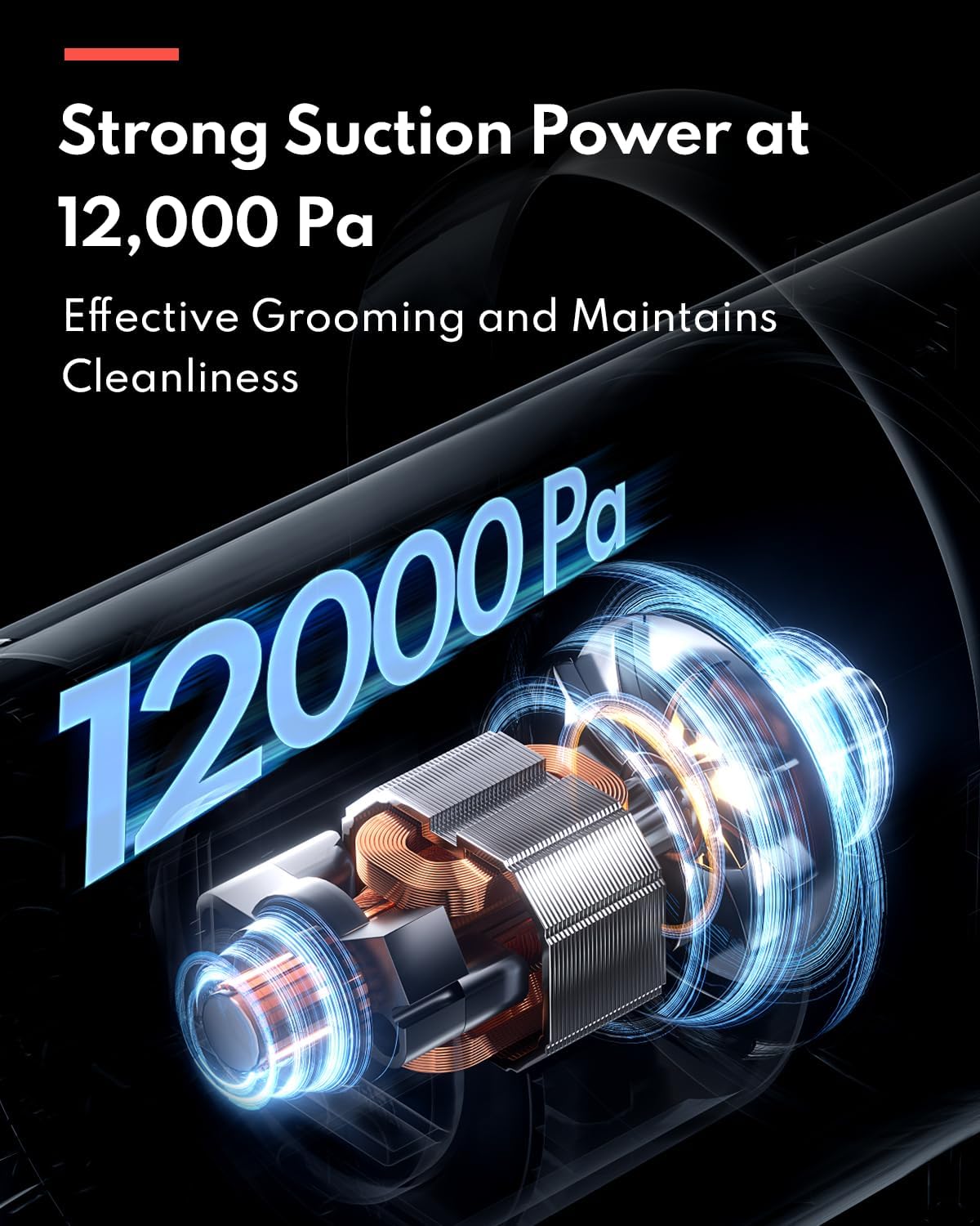 HomeRunPet Ultra Quiet Dog Grooming Vacuum, 12000Pa Suction, 6-in-1 Pet Clipper Kit for Dogs & Cats, Low Noise, Pet Friendly