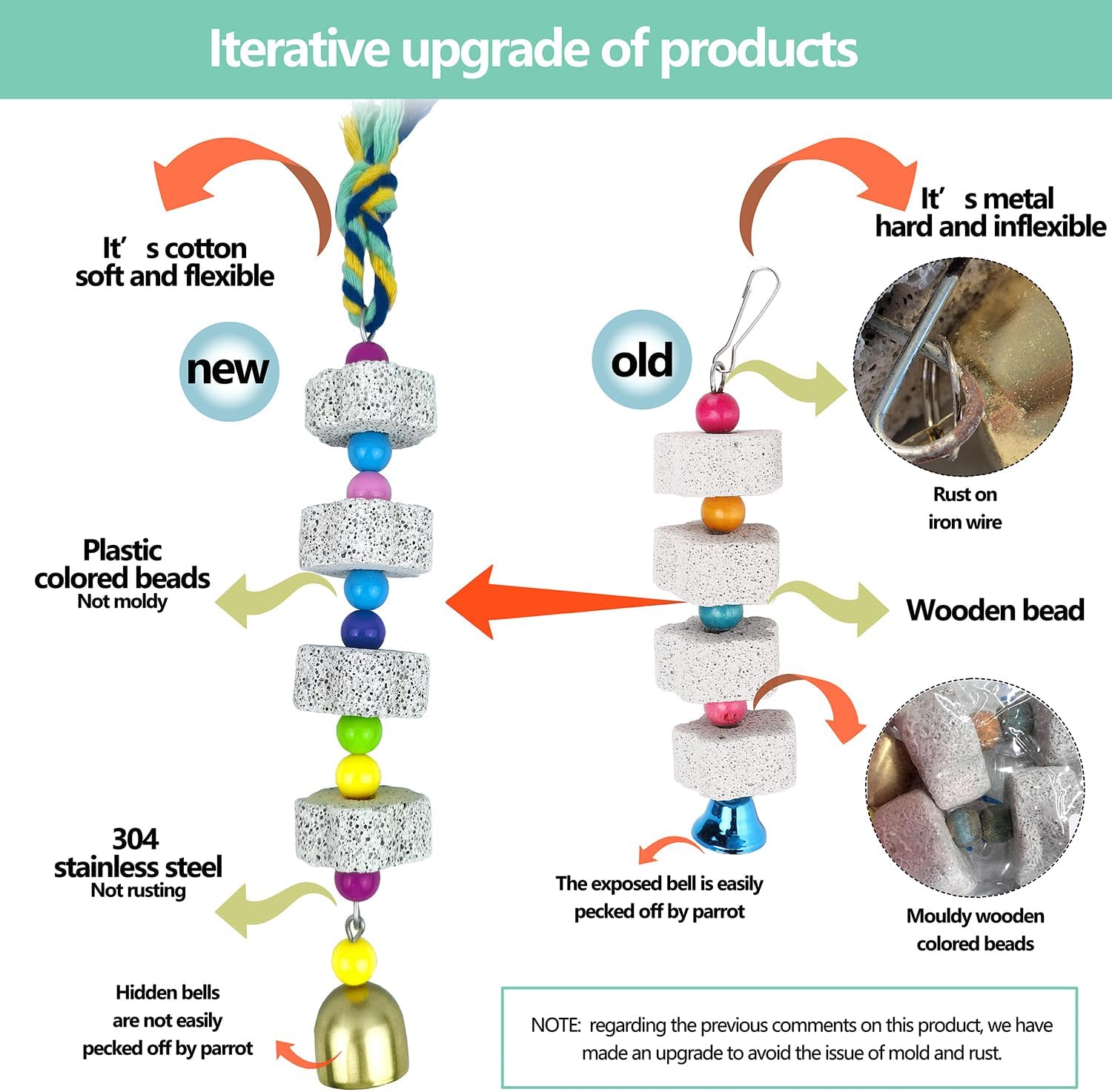 Parrot Chewing Toy with Bell - Bird & Parakeet Beak Grinding Stone - 3 Pack