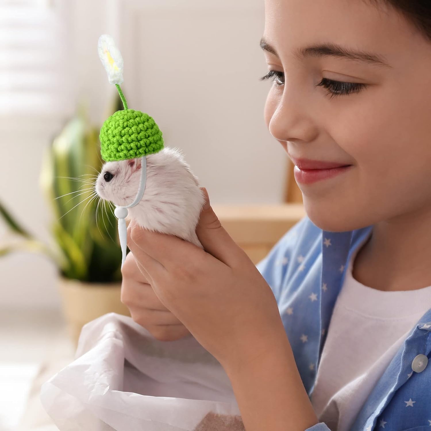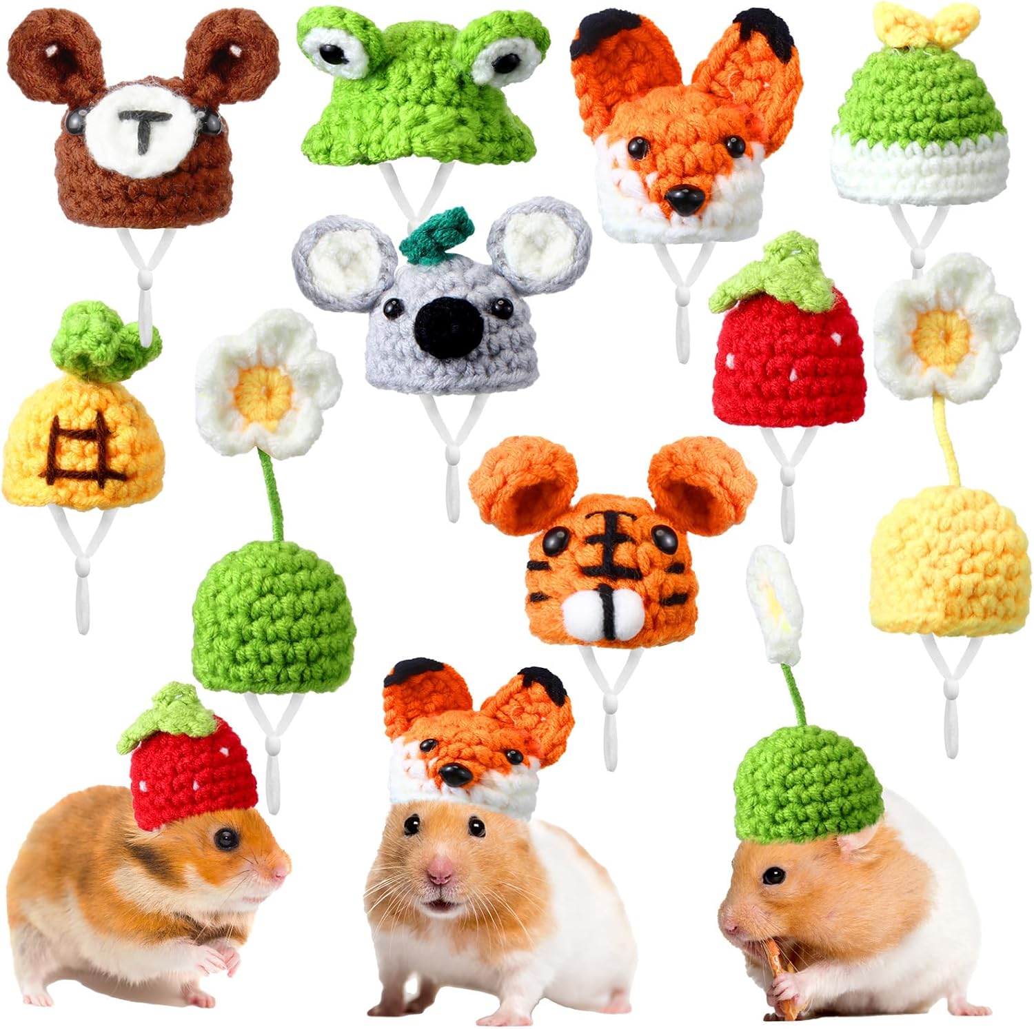 Kajaia 10 Pcs Hamster Hat Small Animals Cute Tiny Hat Mini Hand Knitted Hats for Snakes Pets Bearded Dragon Guinea Pig Bunny Costume Accessories Easter Holiday Parties(Cute Style)