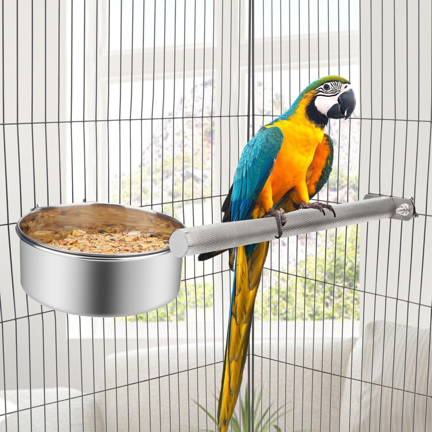 Wontee Pet Food Water Bowl with Clamp Holder Stainless Steel Feeding Cups Feeder for Dog Bird Parrot Cat Rabbit, 2 Packs (XL)