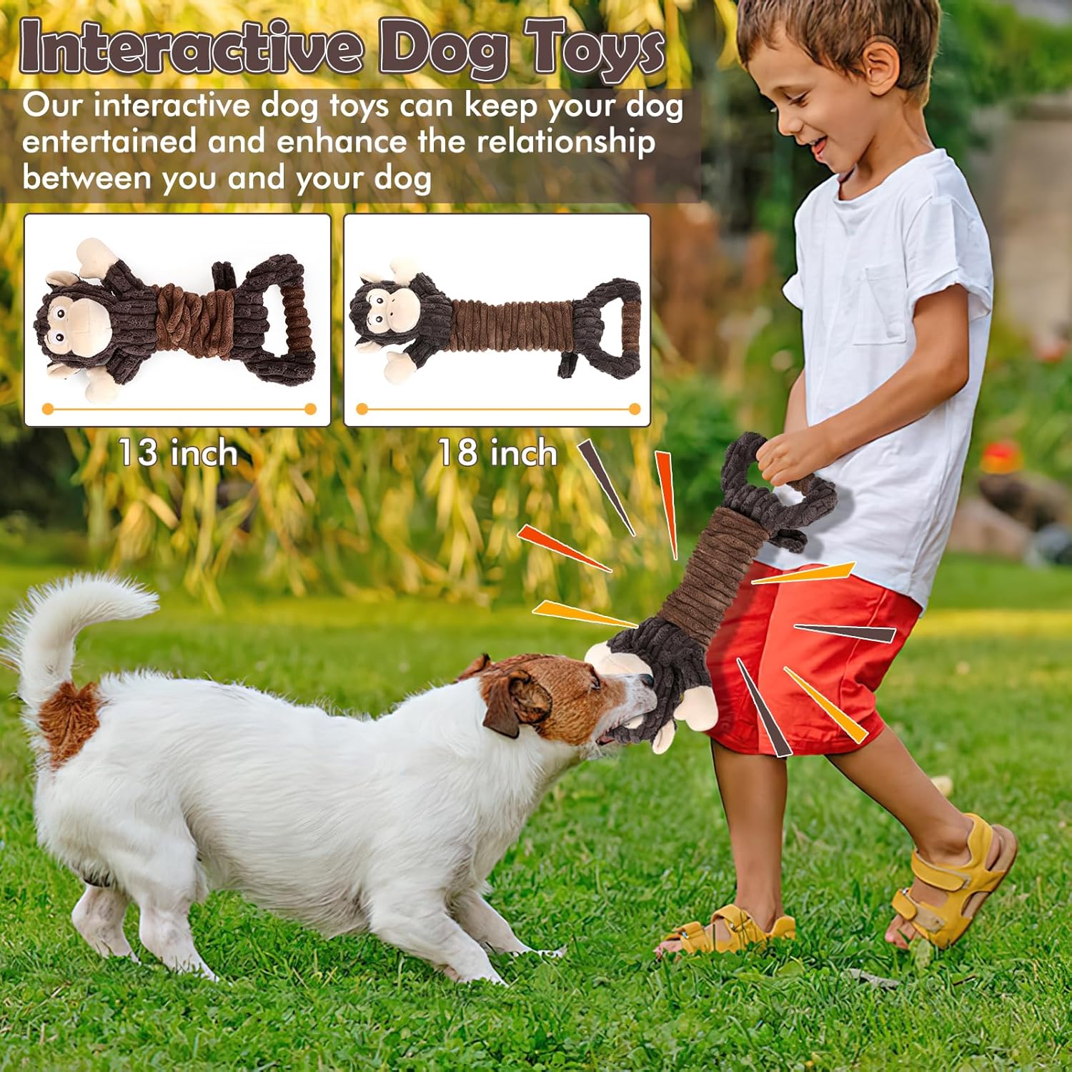 Plush Dog Toy with Crinkle Paper, Tug of War Pull Interactive Toys for Puppies to Large Dogs