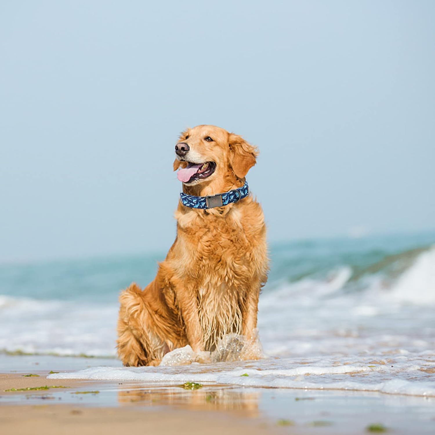 Elegant little tail Dog Collar, Blue Shark Pattern Pet Collar Durable Cute Dog Collars Male or Female Pet Gift Adjustable Dog Collar for X-Small Dogs