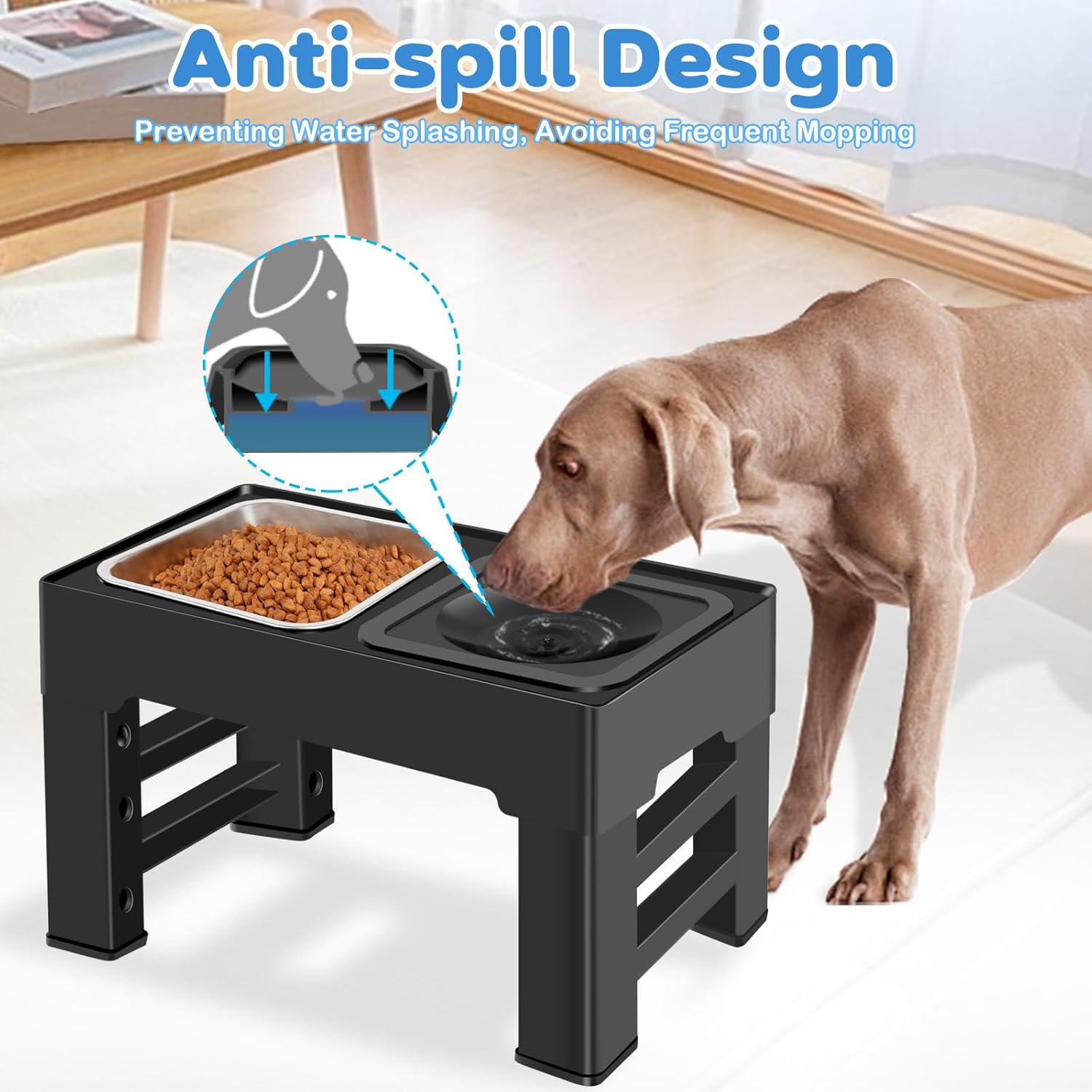 2-in-1 Elevated Dog Bowls, Raised Pet Bowl with Stainless Steel Food Bowl and Spill Proof Water Bowl, 4 Adjustable Heights, Non-Slip Stand, for Small, Medium, Large Dogs and Pets
