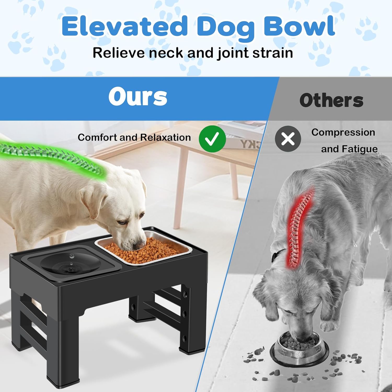 - [IKUSO Elevated Dog Bowl Upgraded Version] IKUSO Elevated Dog Bowl Upgrade: IKUSO stainless steel elevated dog bowl has finally been launched! Now I can have a larger capacity and more sturdy stainless steel dog bowl, which is a 54 ounce stainless steel bowl+approximately 1400 milliliters of splash proof water bowl. gastrointestinal health