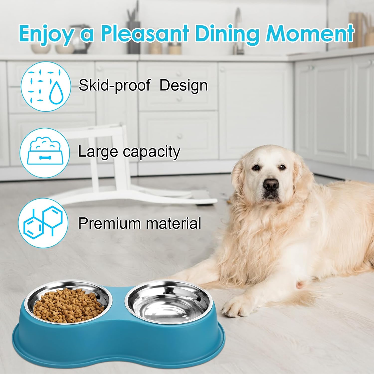 - Full Dinner Set: Our product is a patented design. Set of 2 30oz large capacity dog bowls designed for all size dogs and cats. The double bowl design is convenient for serving food and water at the same time. Also great for multiple pet families. Your pet will definitely love this versatile feeder