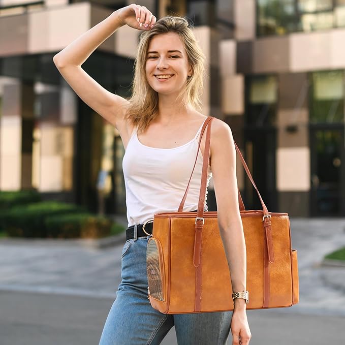 Fashion Dog Purse Pet Carrier Leather Bag for Small Dogs Cats Puppy, Portable Tote Bag Airline Approved Soft-Sided Carriers (Brown)