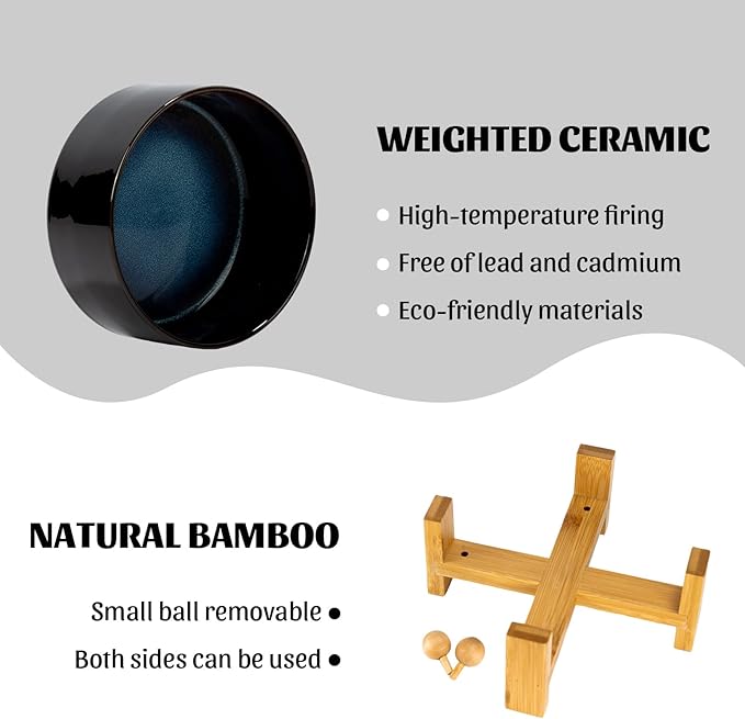 - CERAMIC MATERIAL: SPUNKYJUNKY Tilted Dog Bowl Set uses high temperature fired safe ceramics with a heightened wooden stand to provide a healthy feeding environment for your pet