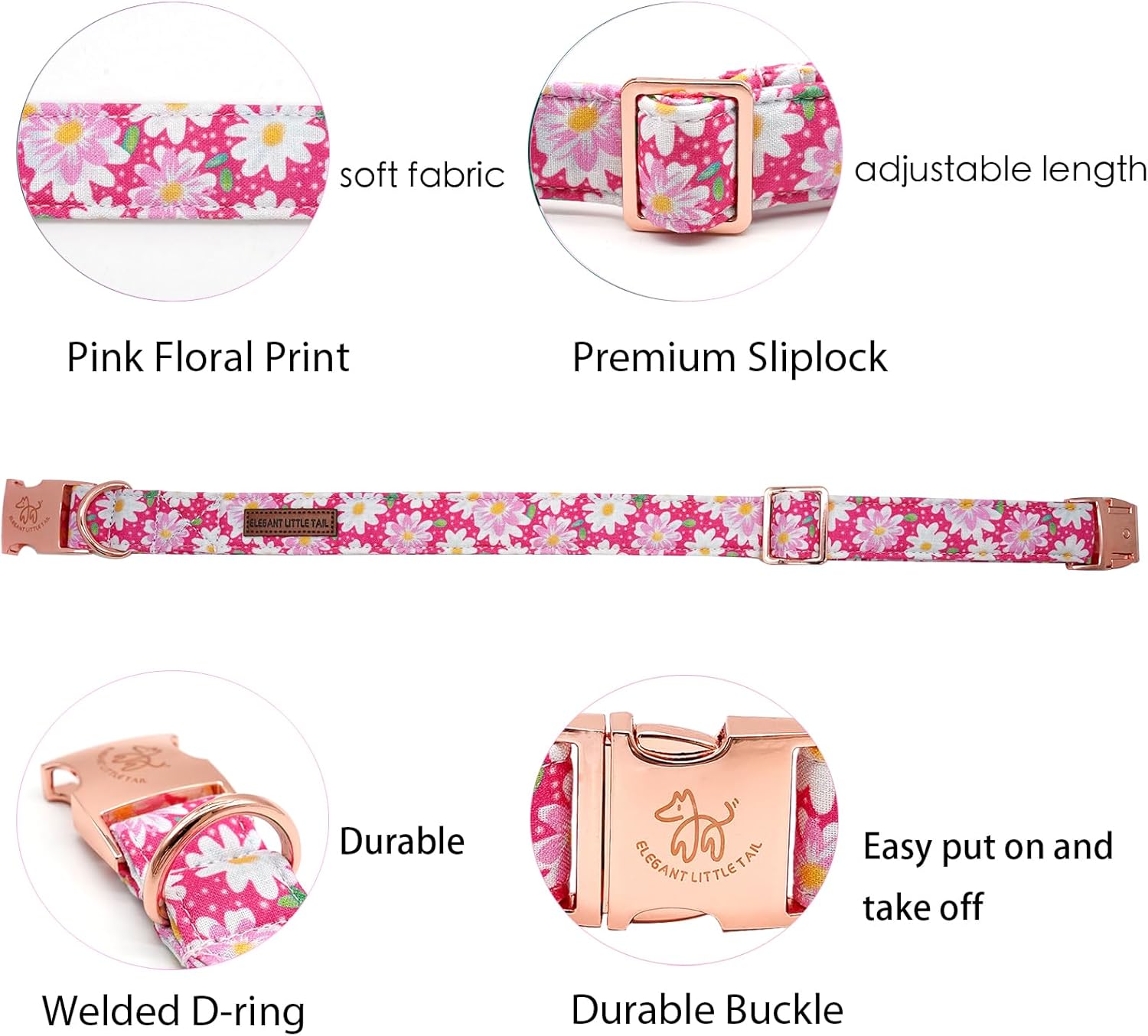 Elegant little tail Dog Collar, Pink Floral Pattern Pet Collar Durable Cute Dog Collars Summer Female Pet Gift Adjustable Dog Collar for Large Dogs