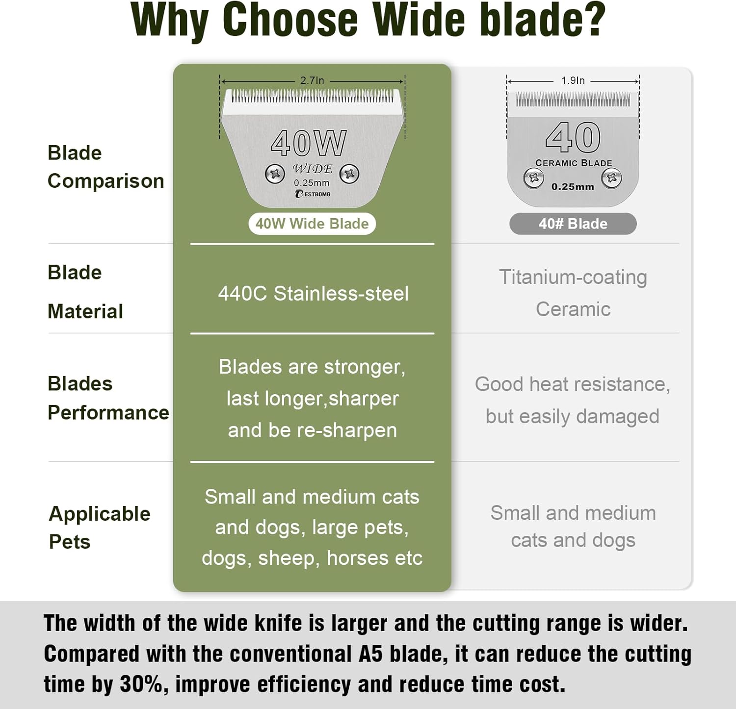Detachable Pet Dog Grooming Blades-Size 40W Dog Grooming Wide Blade,Cutting Length 1/100",Compatible with Andi-s,Oster A5,Wahl km10 Clippers