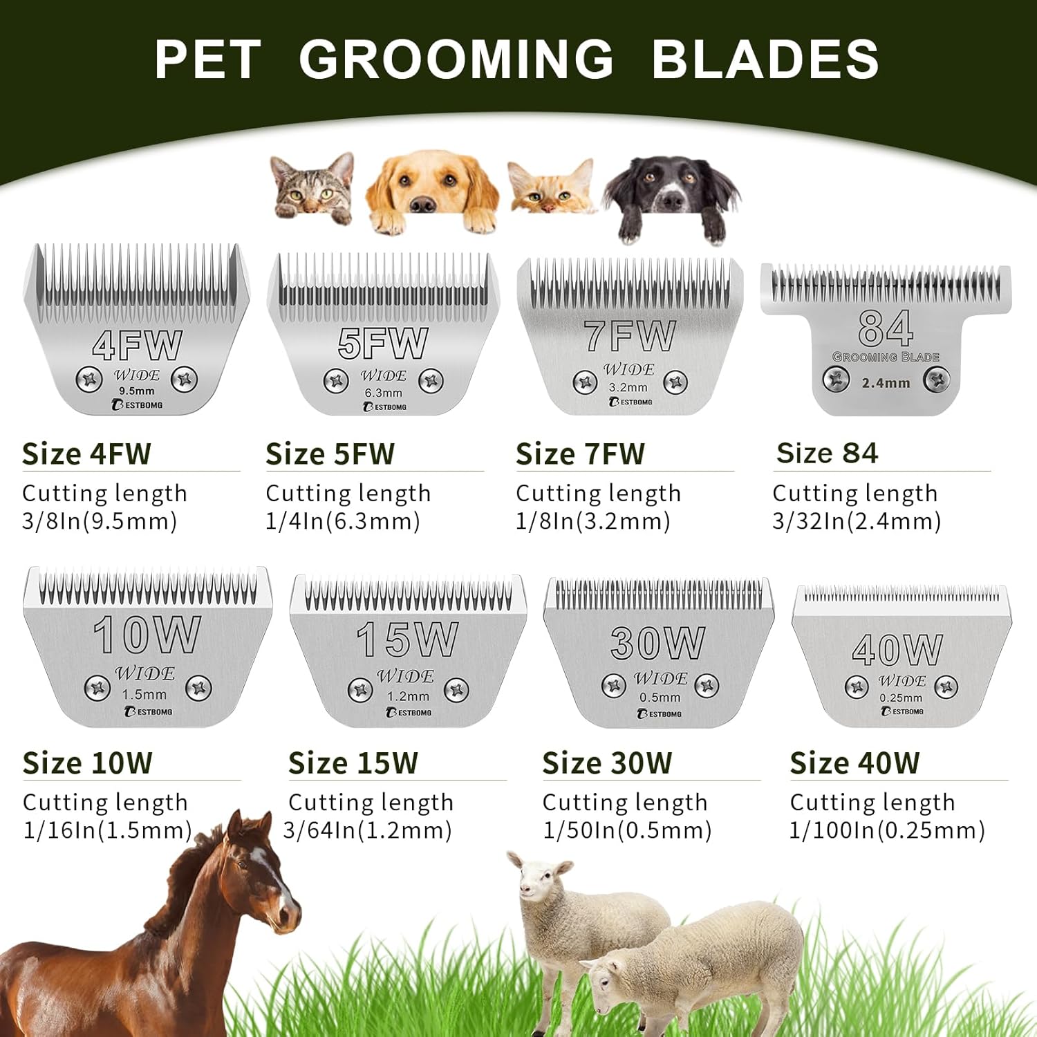 - ▶【SIZE】:40W Dog Grooming Wide Blade Cutting length 1/100”(0.25mm), ideal for larger animals or breeds