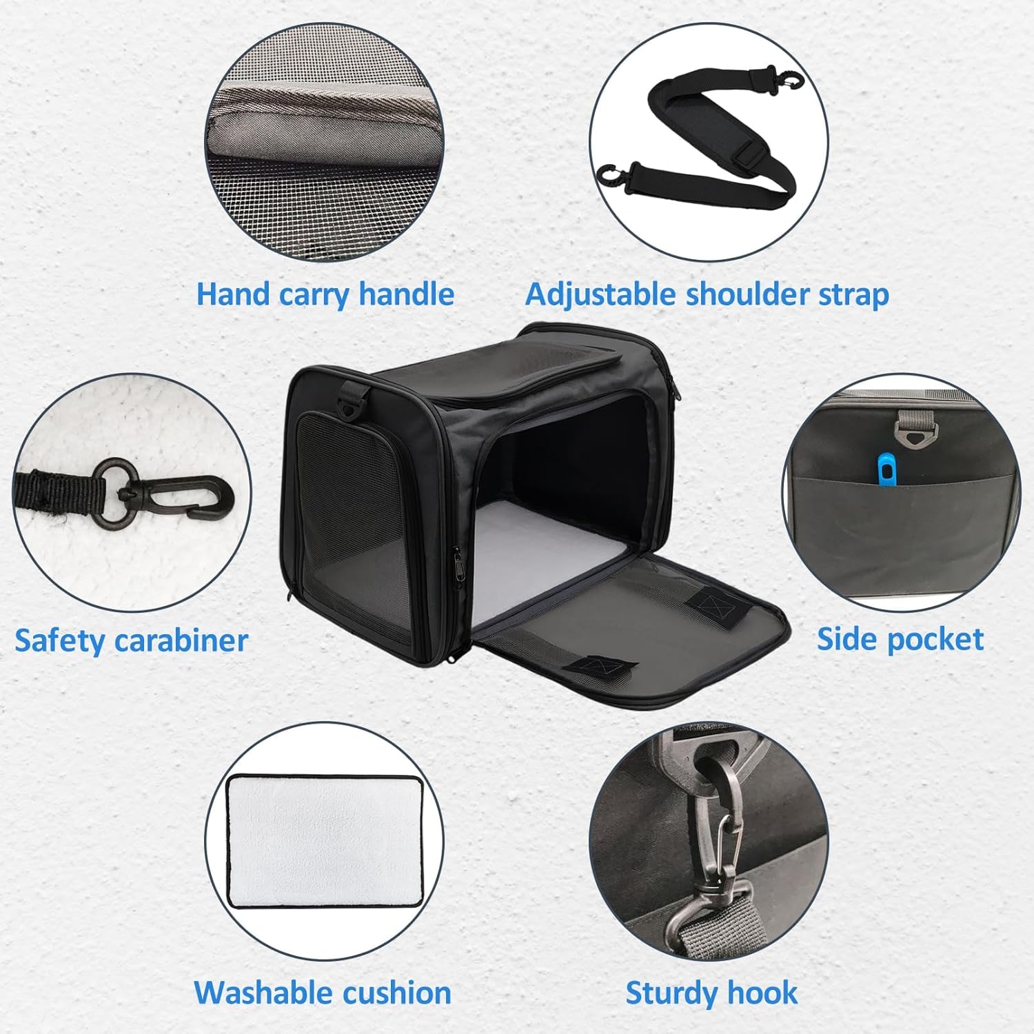 - Unique Details : Kitty carrier is equipped with extra padding on the handles and adjustable shoulder straps, making it more comfortable for both you and pet, and the large side pockets are also convenient for you to store your pet's food and toys, etc