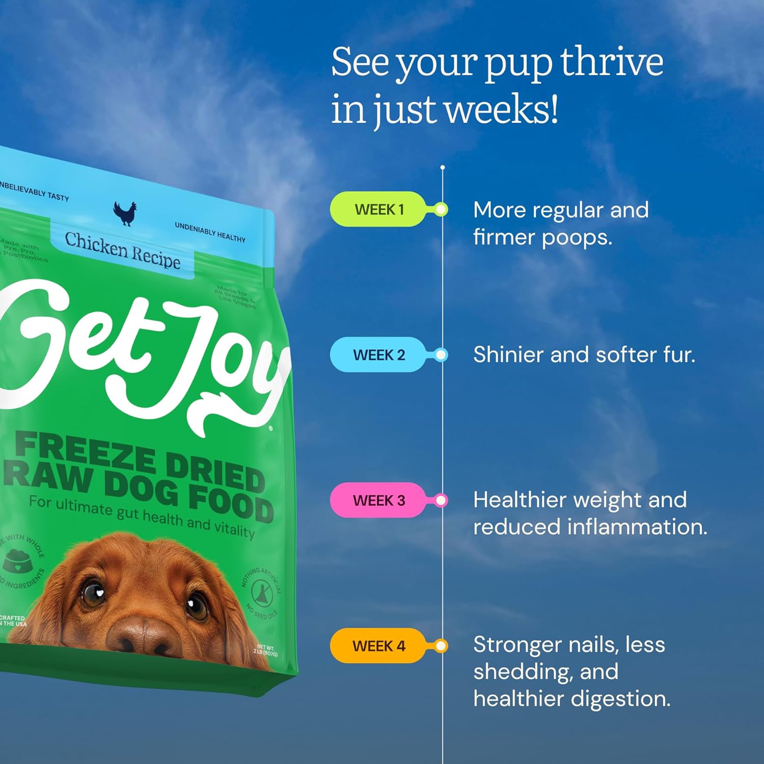 Get Joy Freeze Dried Raw Chicken Dog Food, High Protein Grain Free Meal, Topper & Treat, Gut Health Support with Probiotics, Small to Large Breed, 16oz Bag