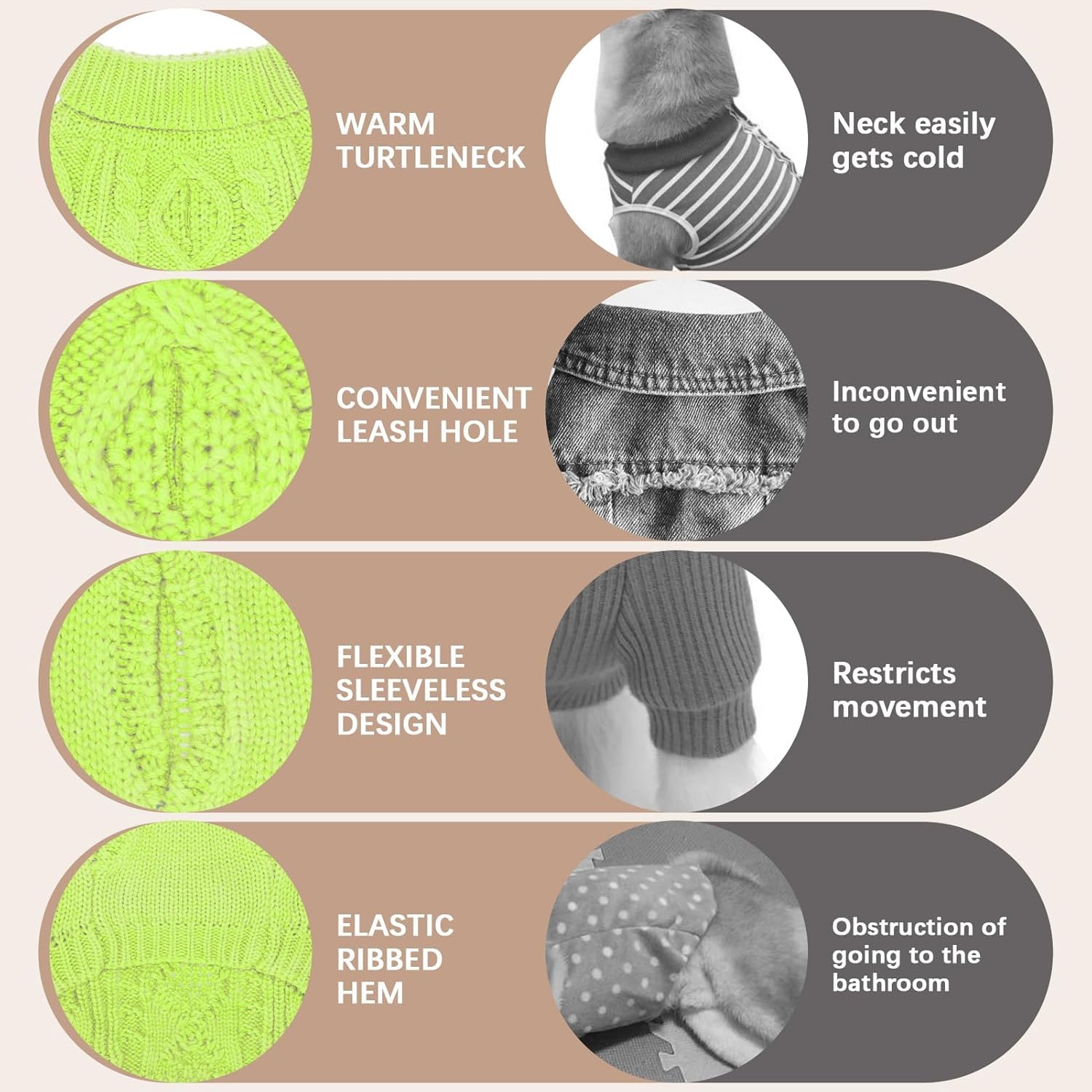 - 【Fashionably Warm】Our sleeveless dog sweater features a classic turtleneck design, keeping your furry friend stylish and cozy. The soft touch ensures ultimate comfort for your pet.