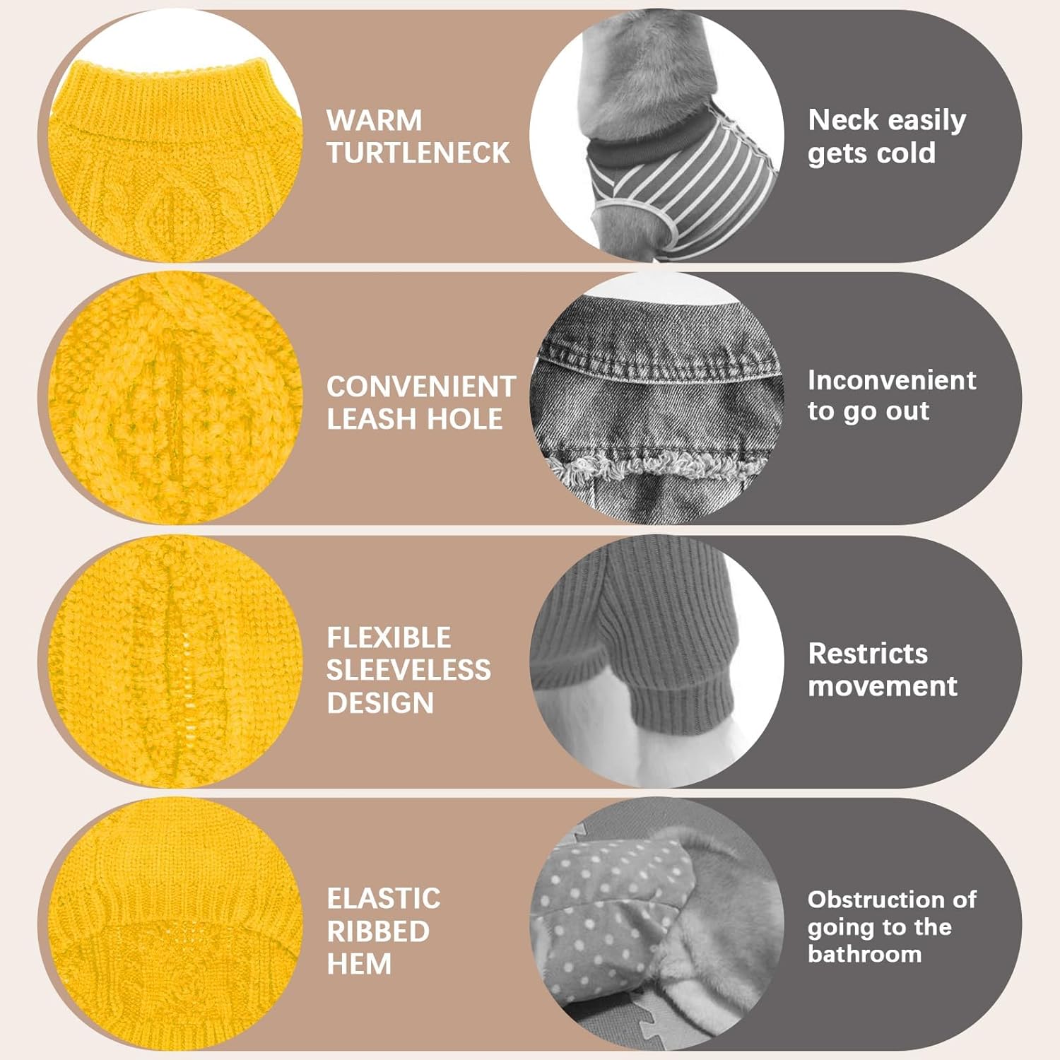 - 【Fashionably Warm】Our sleeveless dog sweater features a classic turtleneck design, keeping your furry friend stylish and cozy. The soft touch ensures ultimate comfort for your pet.