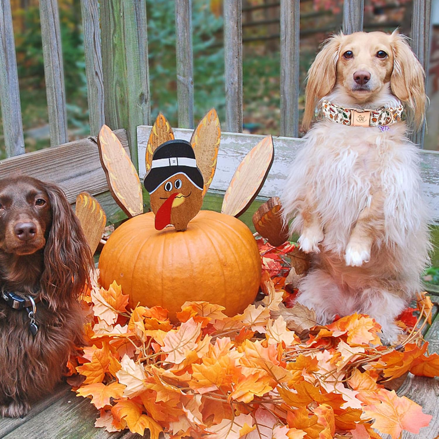 Elegant little tail Thanksgiving Dog Collar, Fall Turkey Print Pet Collar Durable Dog Collars Male or Female Holiday Pet Gift Adjustable Dog Collar for X-Small Dogs