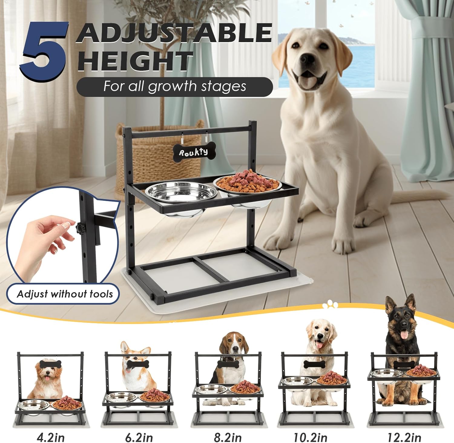 - 【5 Heights Adjustable】 You can adjust the raised dog bowl to 5 heights (4.2", 6.2", 8.2",10.2", 12.2") so it can be used for any size dogs or as they grow from puppy to full grown. Dogs will eat-drink in a more comfortable way, this will help them reduce stress on the neck, joints and muscles, since they don't have to bend down as far to reach their food
