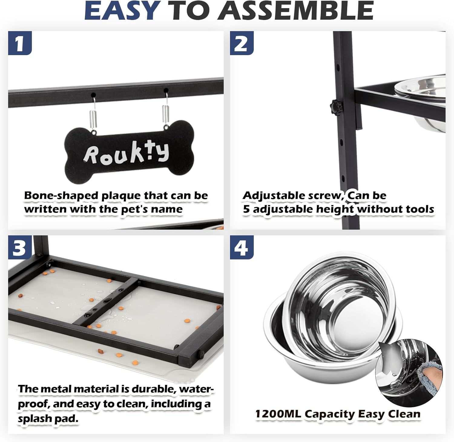 - 【Easy to Clean】Our dog bowl stand with two removable stainless steel dog bowls. The dog bowl material is rust-resistant, durable, dishwasher-safe and easy to clean. The 1200ml dog food bowls can meet the pet's daily diet and drinking water needs, and the large capacity dog bowls is more convenient for large dogs