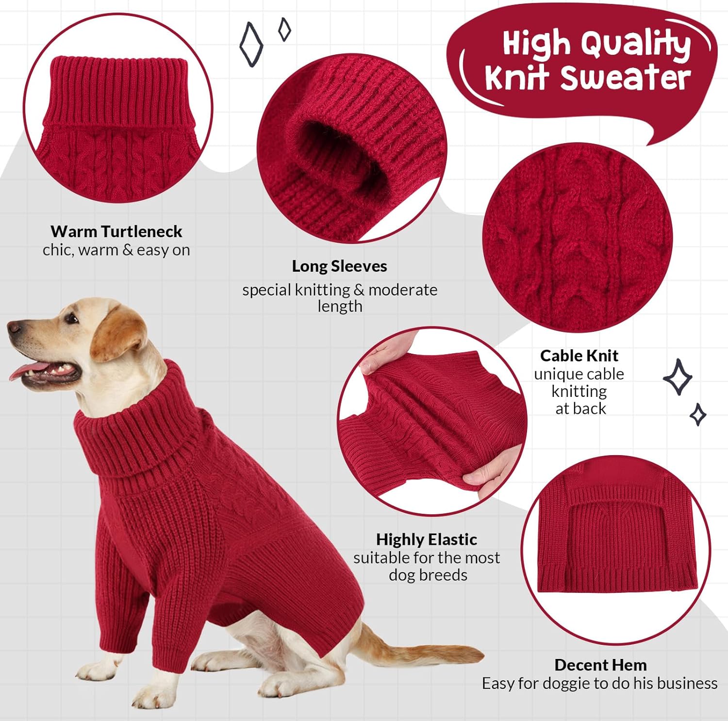 - Warm Turtleneck Dog Sweaters - The premium cable knitting dog sweater is made of ultra soft fleece yarn that keeps warm well. The cute dog sweater features turndown turtleneck, long sleeves, stretchy and cozy coverage of the body, keeping your dog warm comfortably.