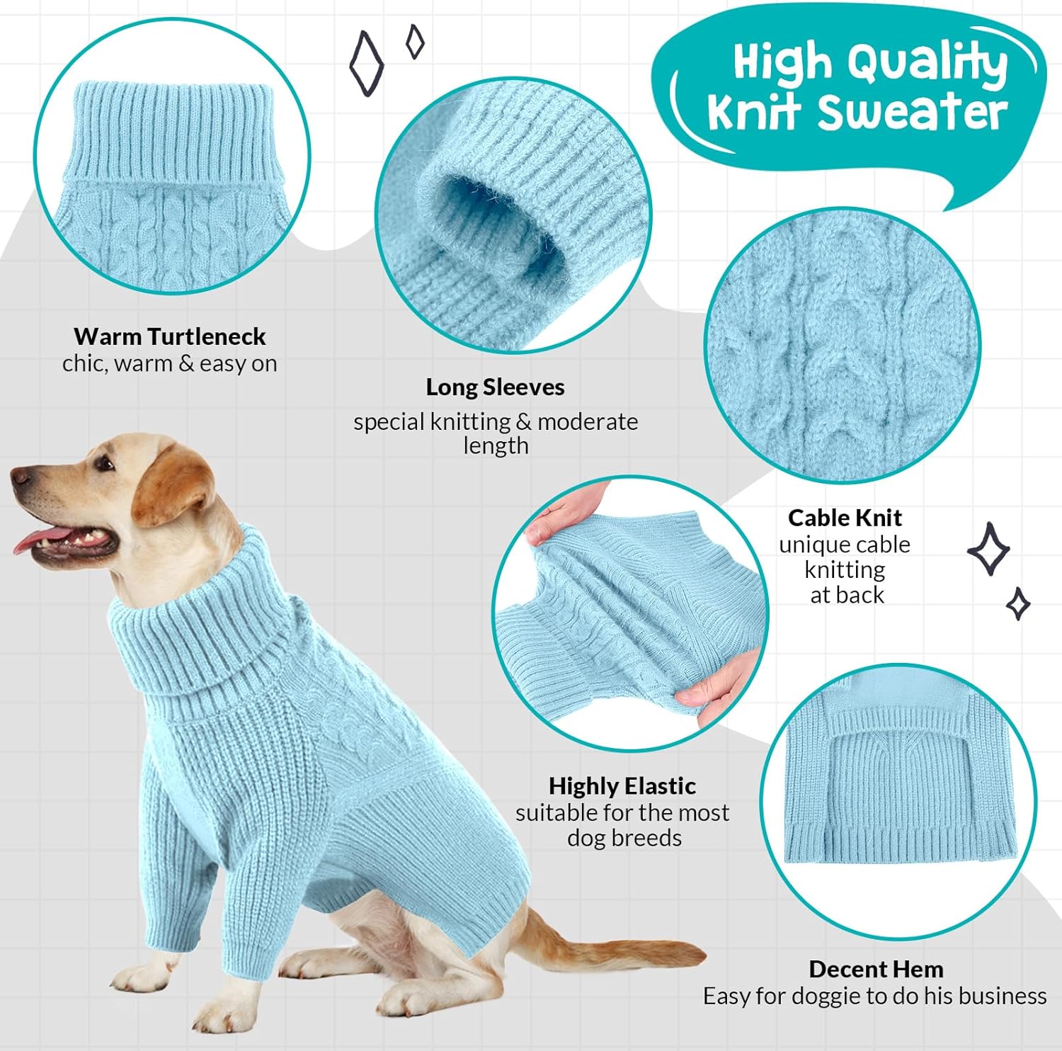 - Warm Turtleneck Dog Sweaters - The premium cable knitting dog sweater is made of ultra soft fleece yarn that keeps warm well. The cute dog sweater features turndown turtleneck, long sleeves, stretchy and cozy coverage of the body, keeping your dog warm comfortably.