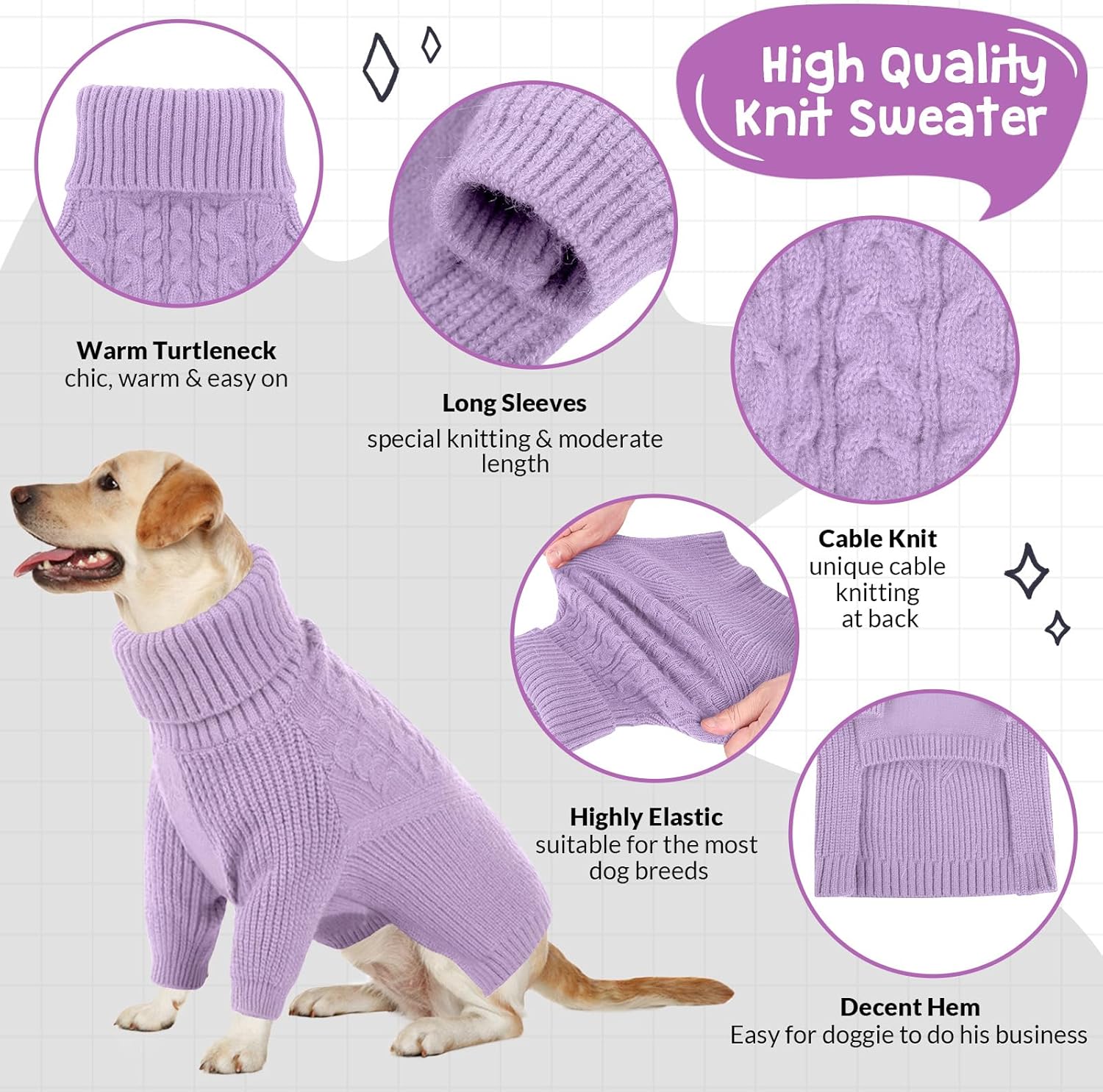 - Warm Turtleneck Dog Sweaters - The premium cable knitting dog sweater is made of ultra soft fleece yarn that keeps warm well. The cute dog sweater features turndown turtleneck, long sleeves, stretchy and cozy coverage of the body, keeping your dog warm comfortably.
