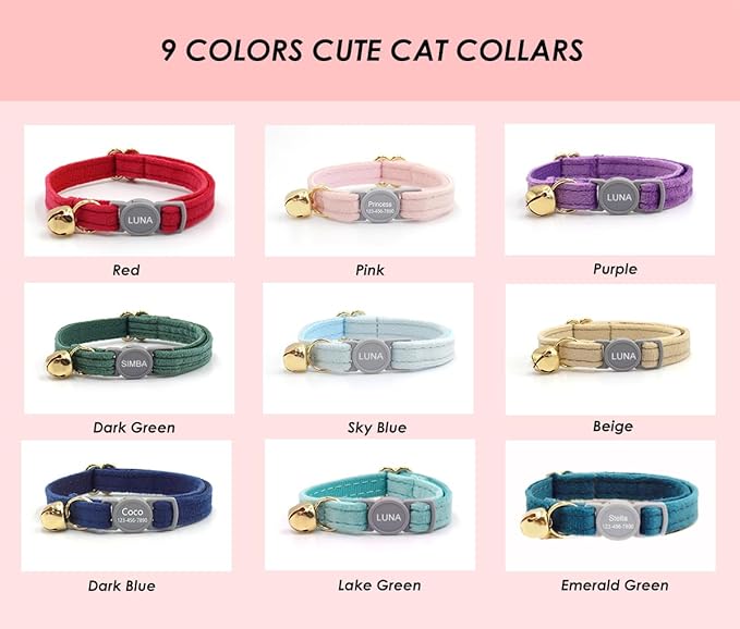 - The velvet material used for the collar has a soft touch that's gentle on your cat's skin and lightweight design ensures your cat hardly notices they are wearing it