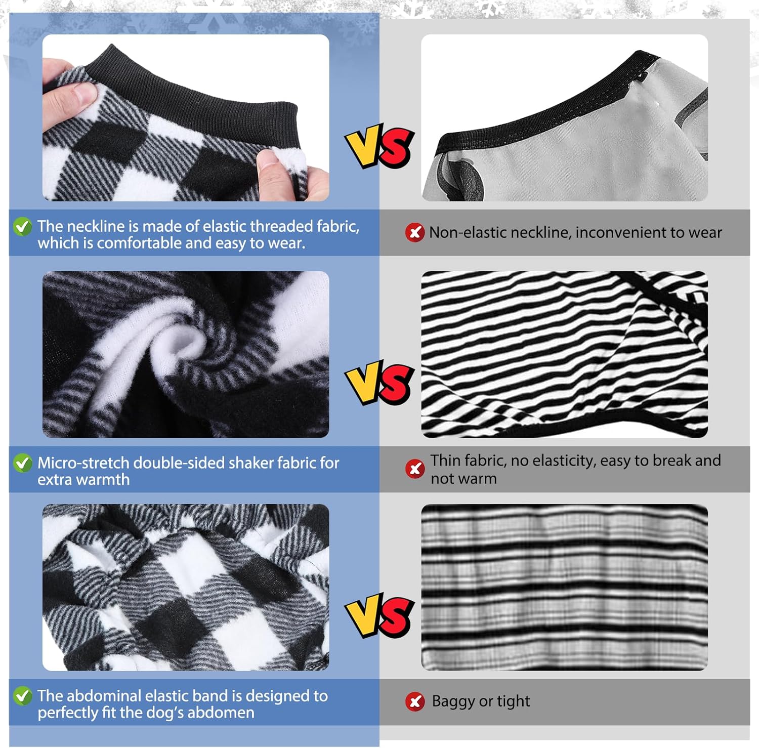 - CUTE AND FASHIONABLE: Our pajamas are designed with classic checkered pattern, perfect for pets who love to decorate. Make your pet look cute and eye-catching, making this dog onesie a perfect match for Christmas, New Year, Valentine's Day and all holidays.
