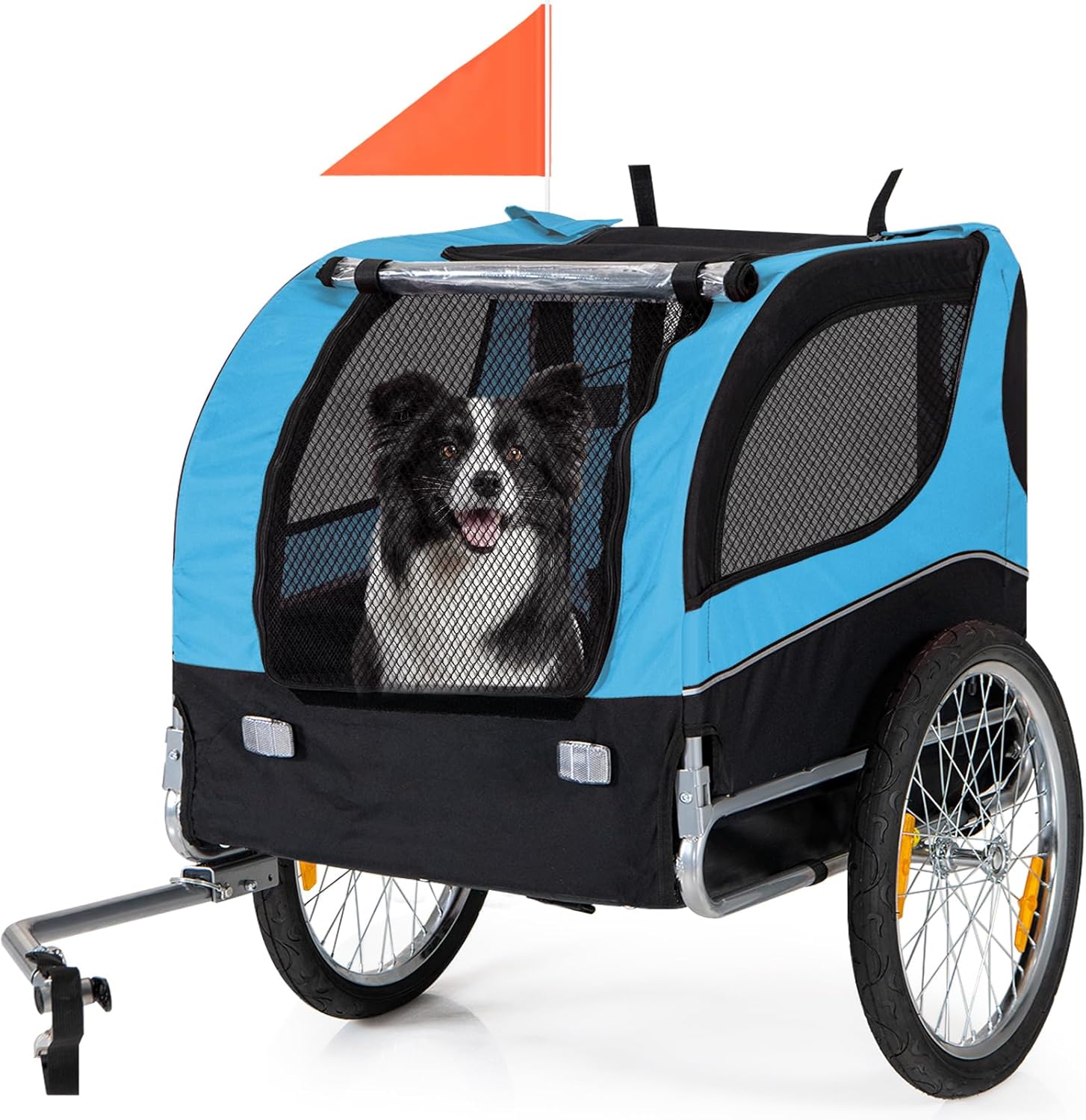 Dog Bike Trailer - HAPPAWS Dog Trailer for Bicycle, Cargo Cycle Trailers Wagon Cart Pet Bike Carrier w/ 3 Doors, Aluminum Wheels, Safety Flag, Easy to Connect&Disconnect, Collapsible to Store