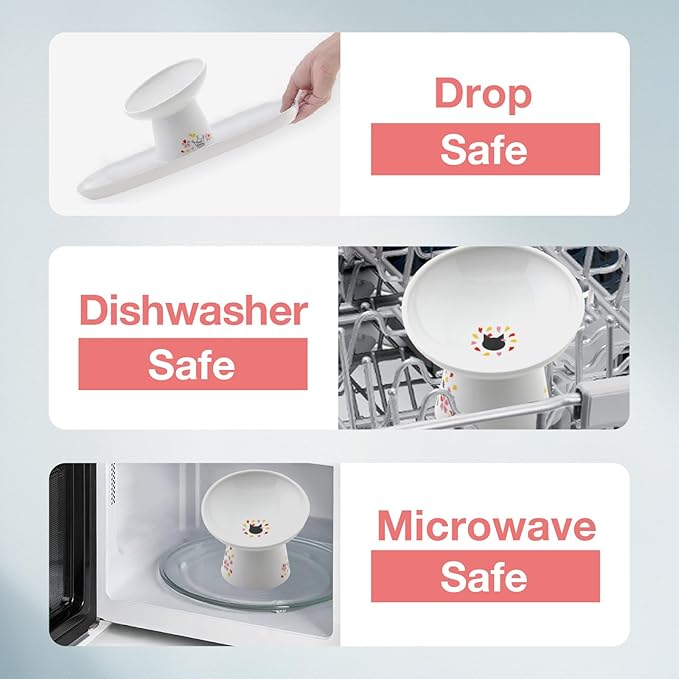 - Safe, Durable & Easy to Clean: Made from high-quality porcelain, free from lead and cadmium; meets strict US, EU and Japanese safety standards; microwave and dishwasher-safe porcelain ceramic cat bowl.