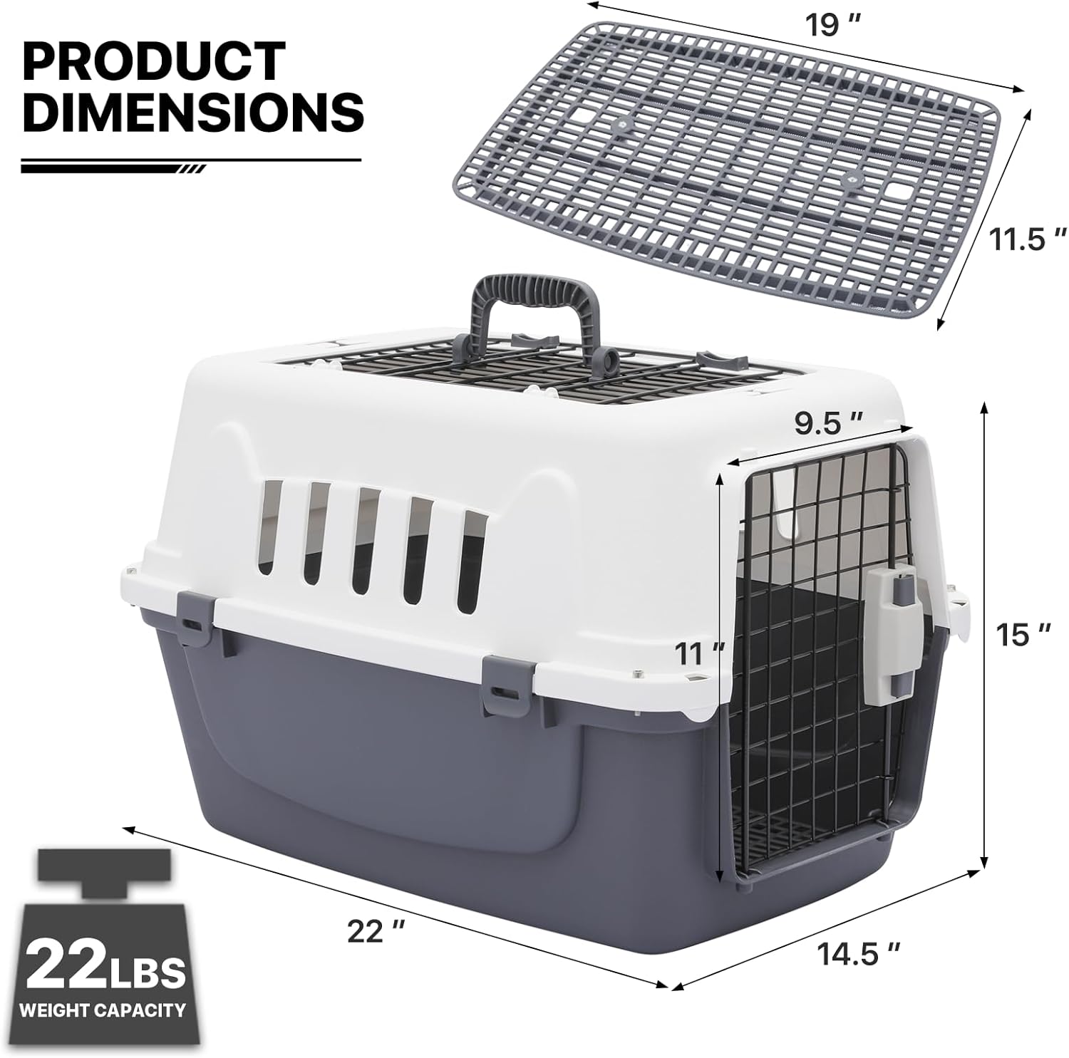 MoNiBloom 22-Inch Dog Crate Plastic 2-Door Top Loading Cat Carrier, Hard-Sided Dog Travel Carrier for Small Dogs and Cats, Ventilation and Security Lock Design for Pets up to 22 lbs (Grey)