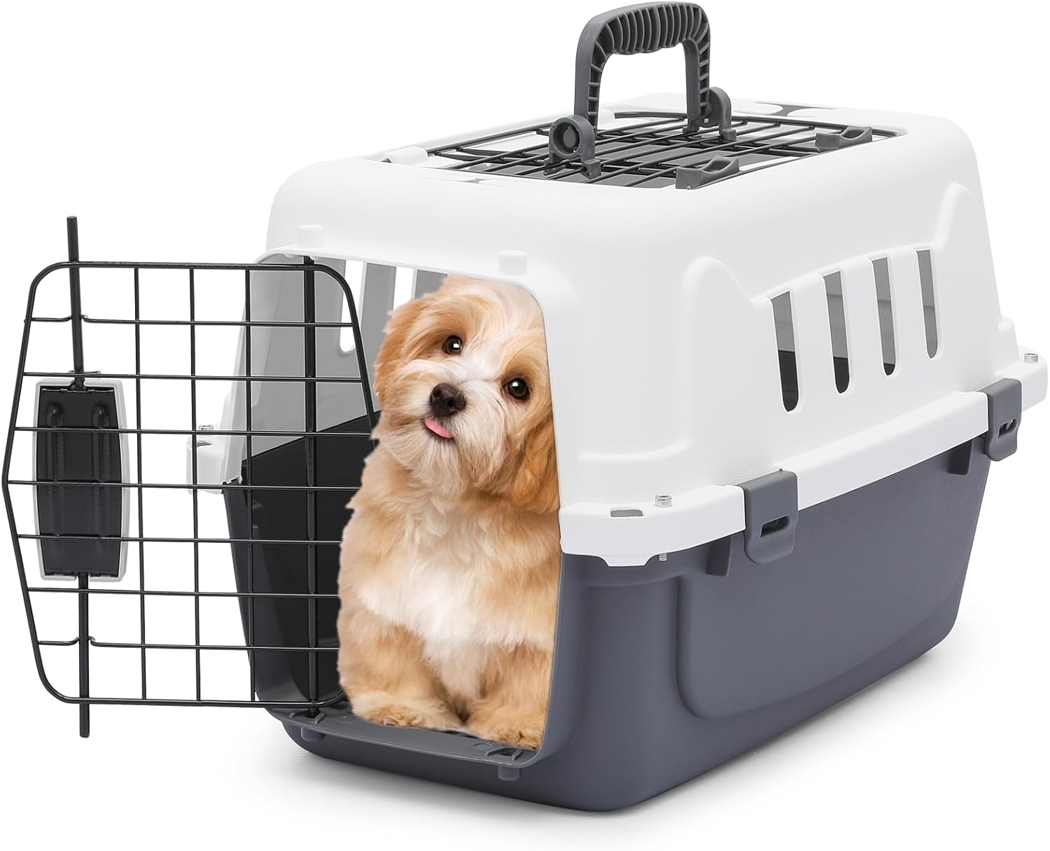 MoNiBloom 18-Inch 2-Door Top Loading Cat Carrier, Plastic Dog Crate Hard-Sided Dog Travel Carrier for Small Dogs and Cats, Ventilation and Security Lock Design for Pets up to 10 lbs (Grey)